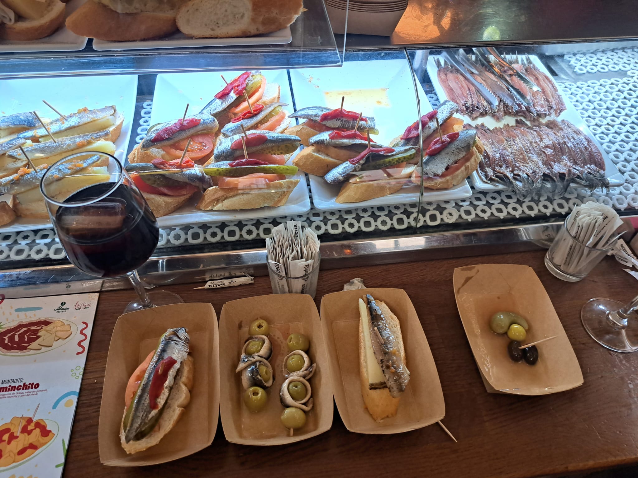 Aquí el ritual es claro: vermut, vino y tapas con historia. Sus anchoas son su gran seña de identidad, con combinaciones sorprendentes que mezclan tradición y creatividad . Perfecto para abrir apetito y entrar en ambiente.
