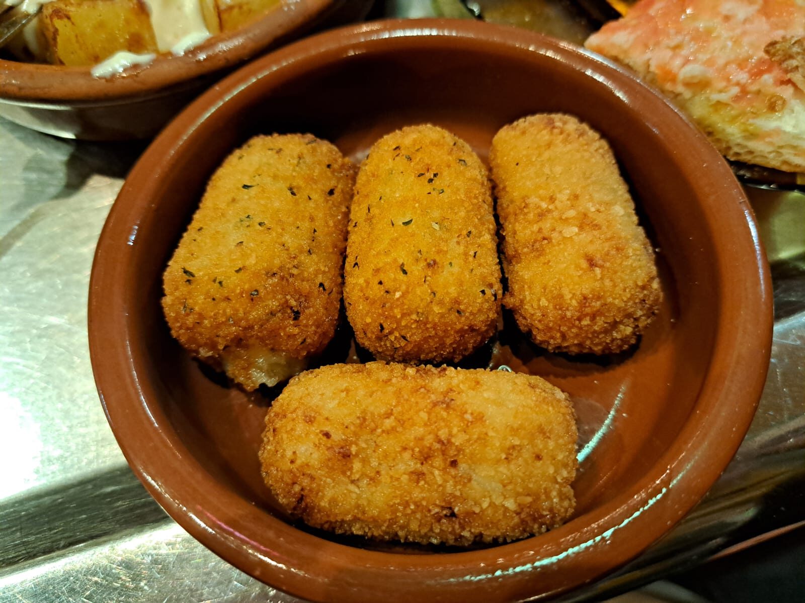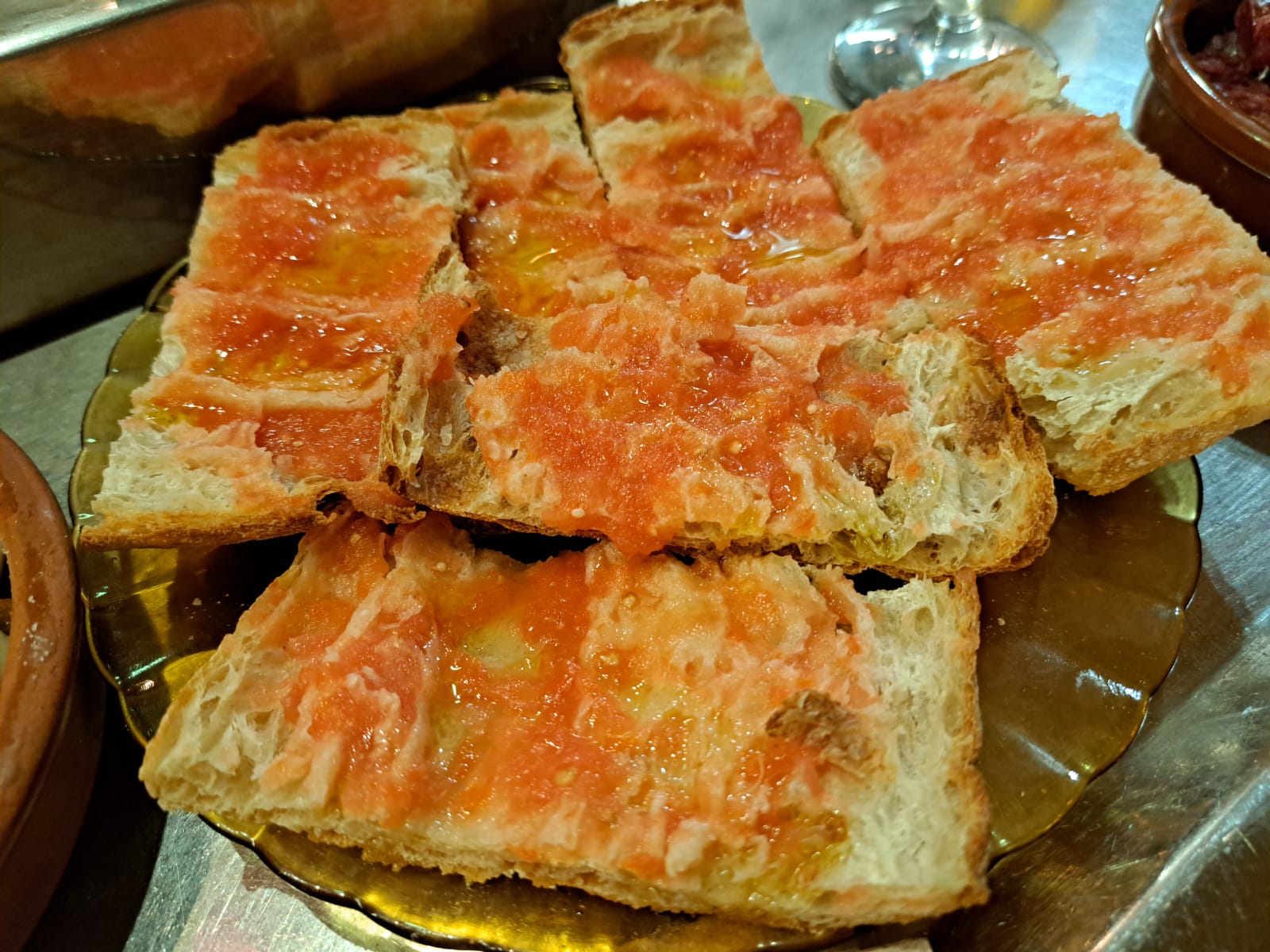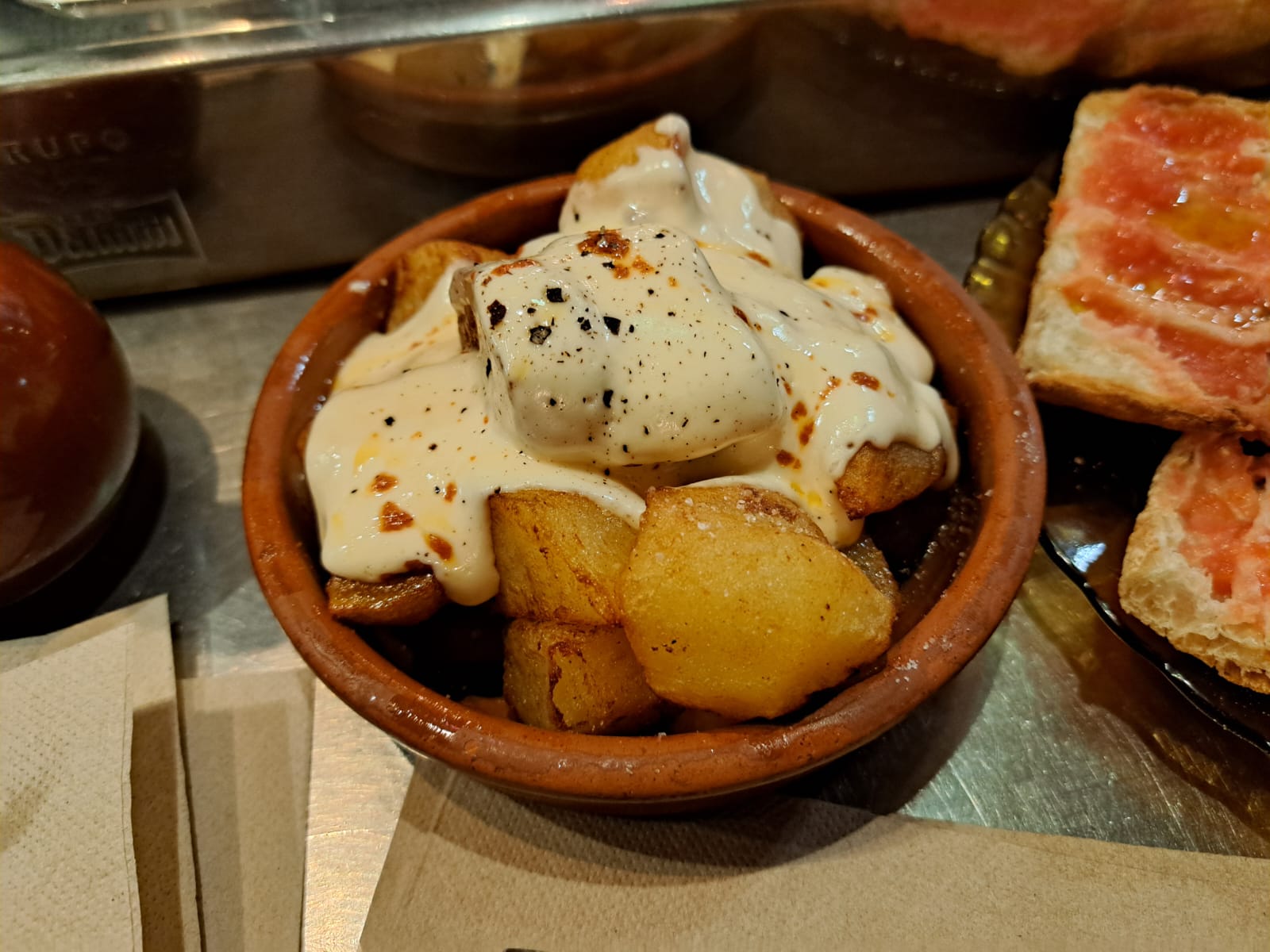 Aquí el tapeo es casi un ritual: la mesa se llena poco a poco, sin prisa pero sin pausa: primero unas bravas, crujientes, con carácter, luego una tortilla jugosa que huele a cocina de verdad, y de repente aparece un hummus que rompe el guion clásico con un toque moderno. Todo invita a compartir.