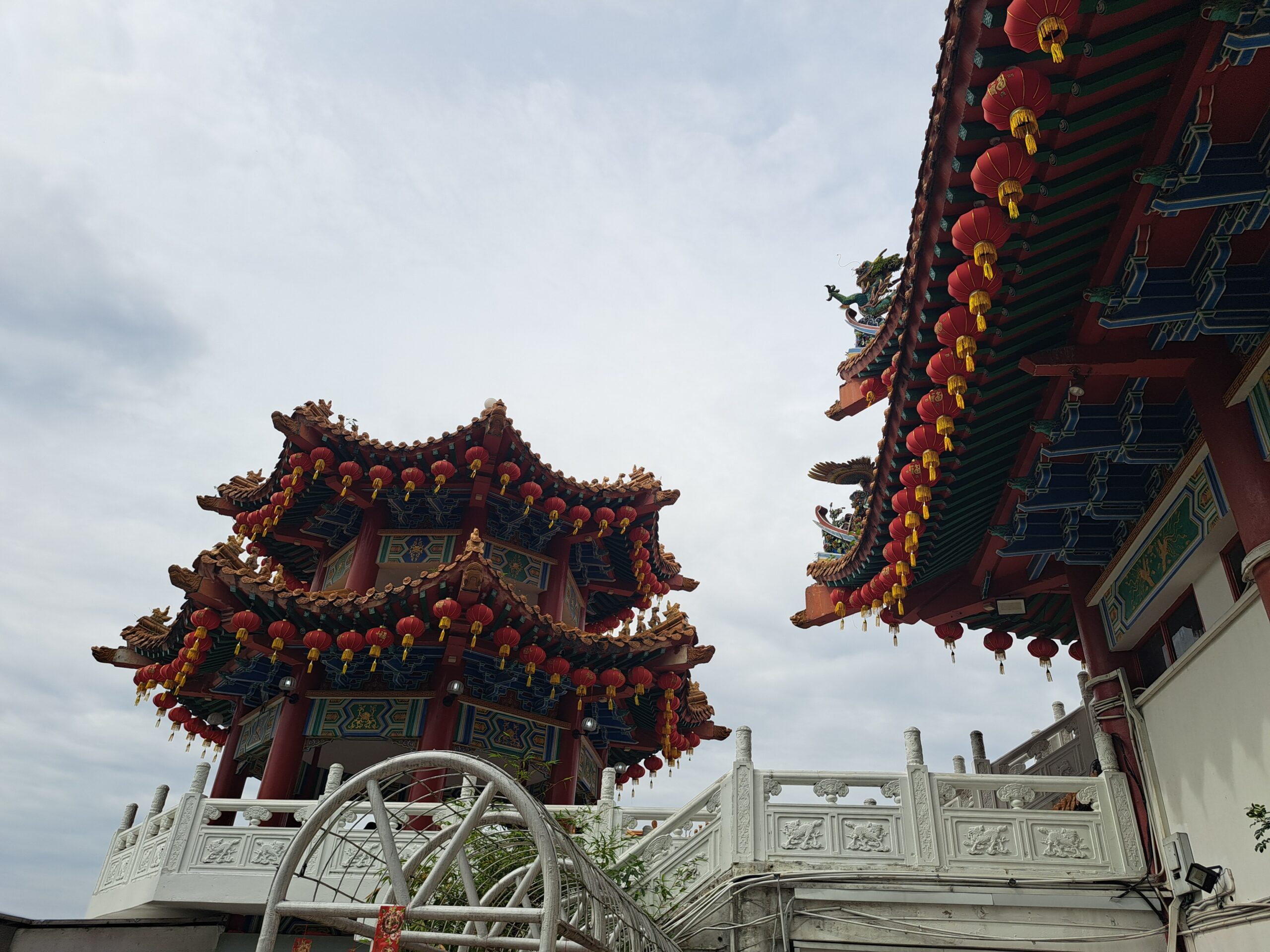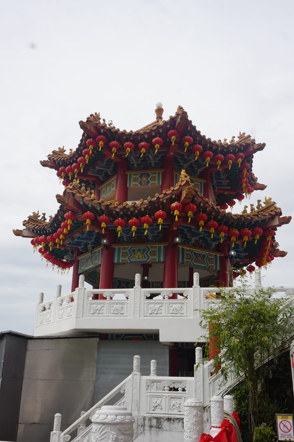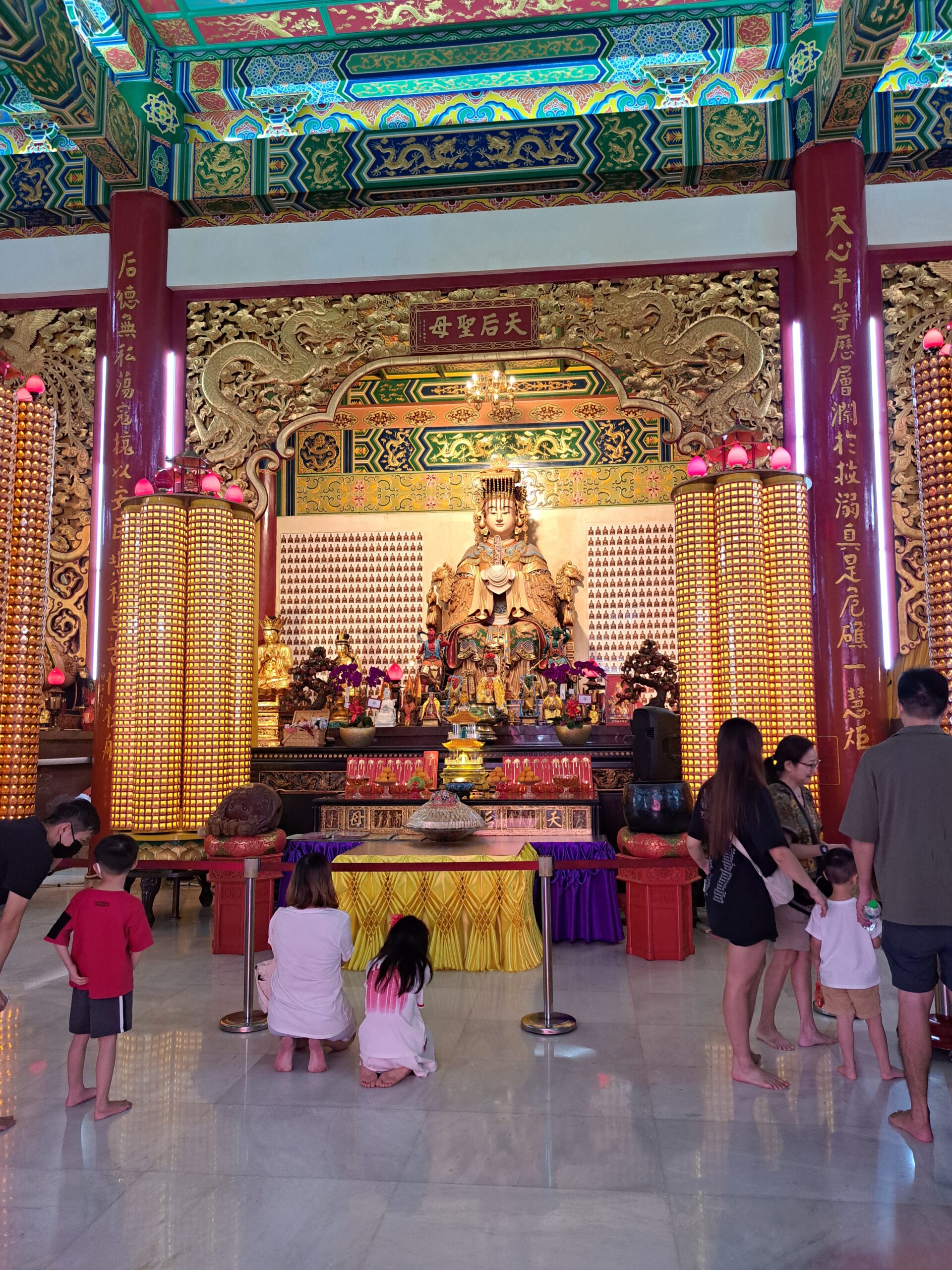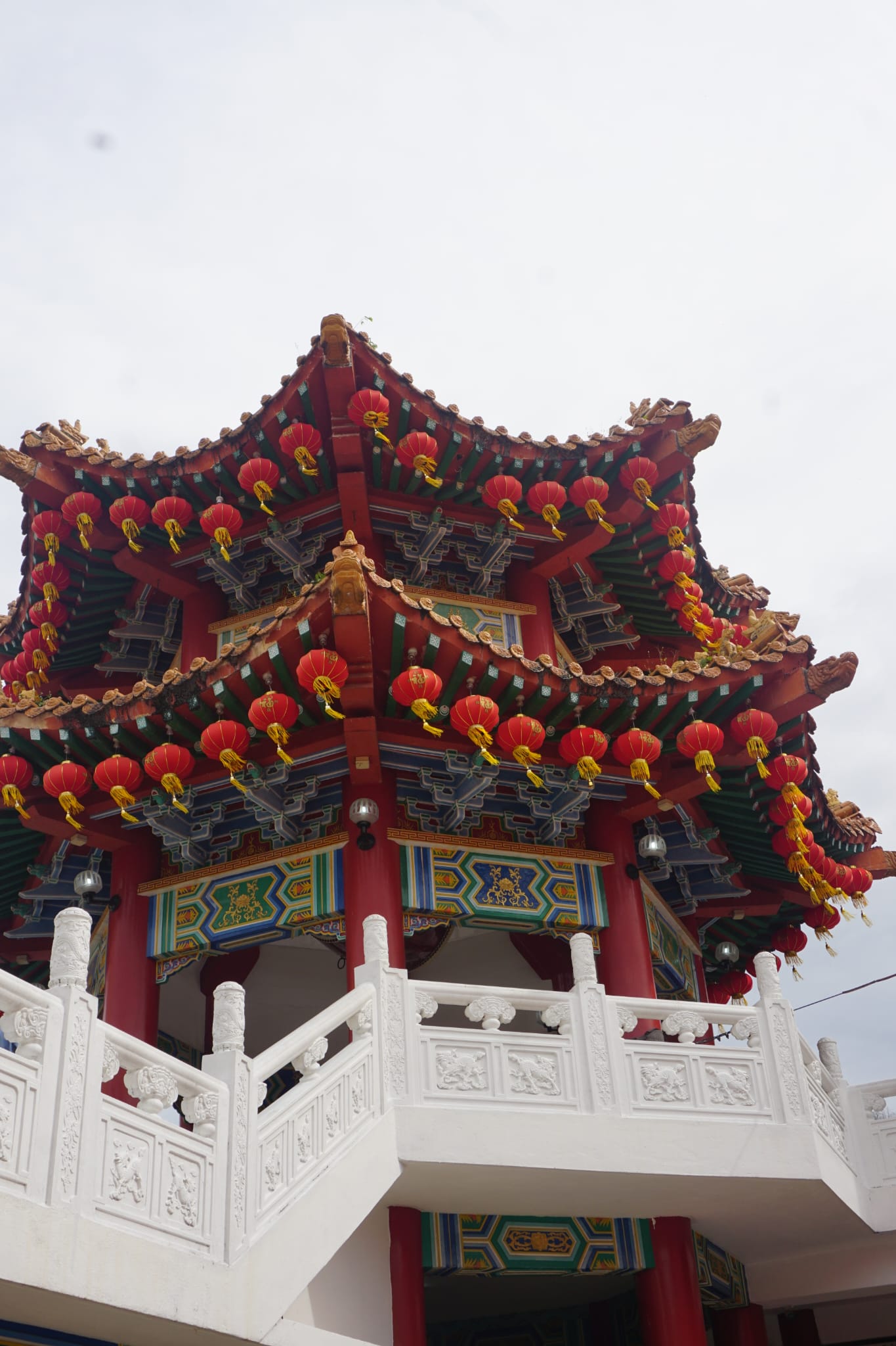 Este templo chino, que fue construido en honor a la diosa Mazu, tiene la peculiaridad que combina dos estilos de arquitectura china: tradicional y moderna. Está lleno de color, destacando sus farolillos amarillos que contrastan de manera preciosa con el rojo de muchos de los ornamentos.