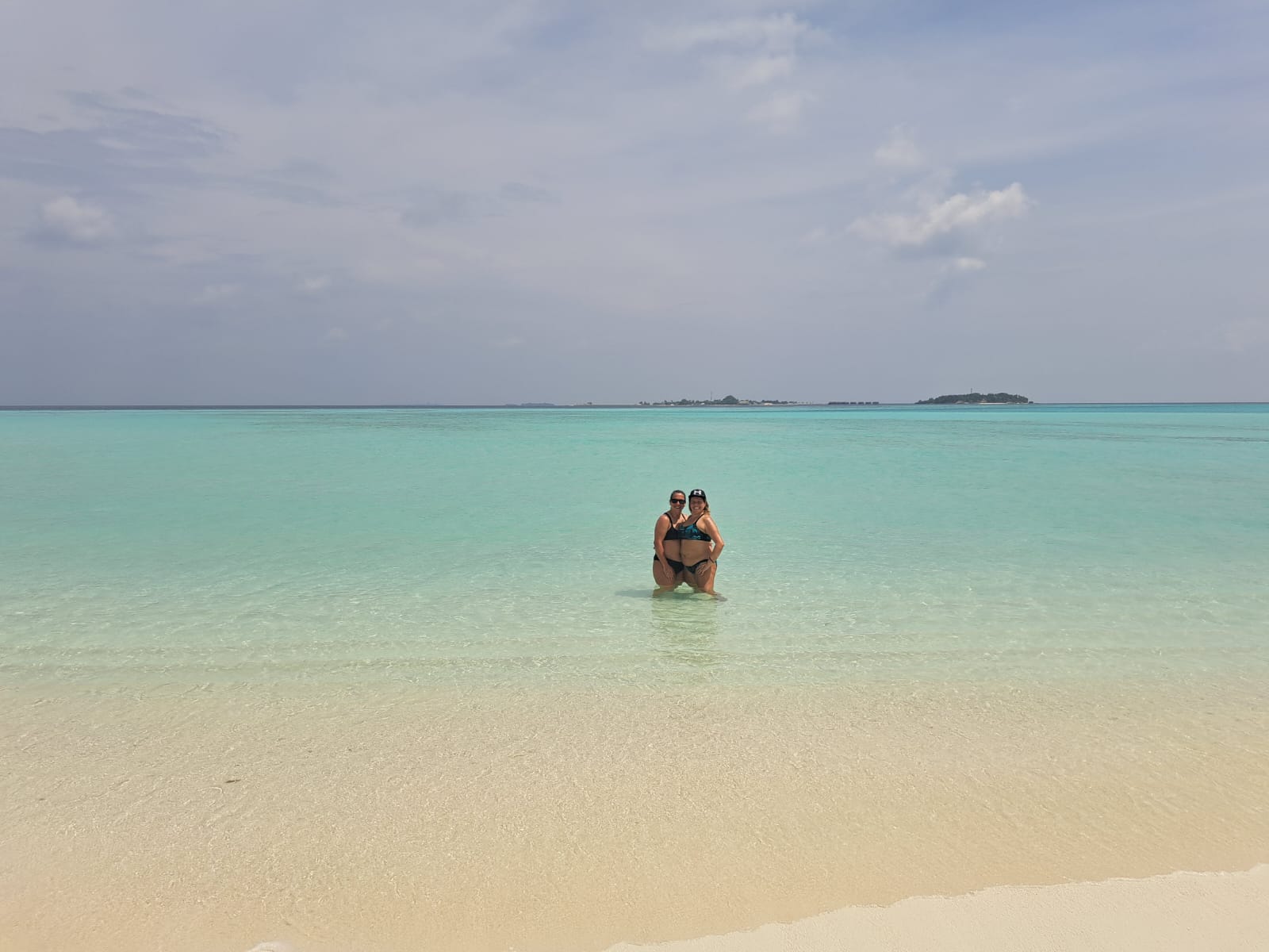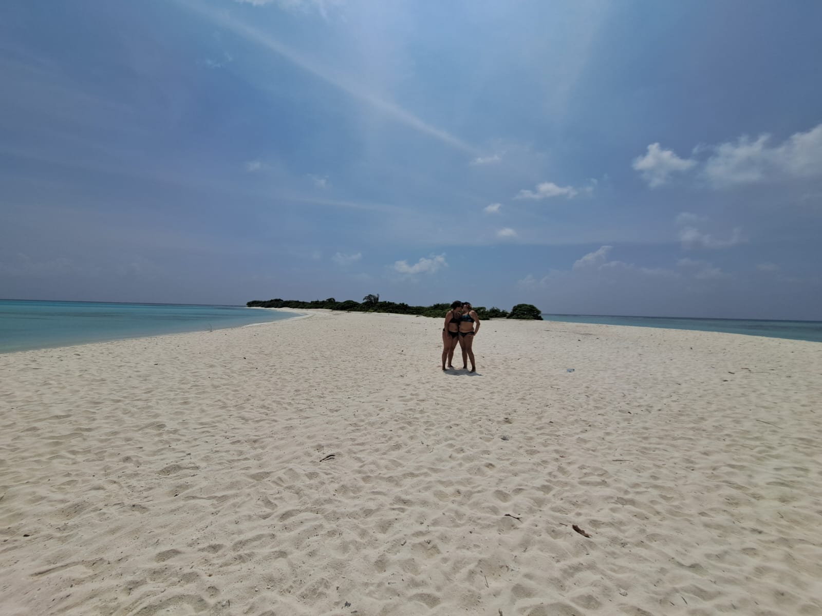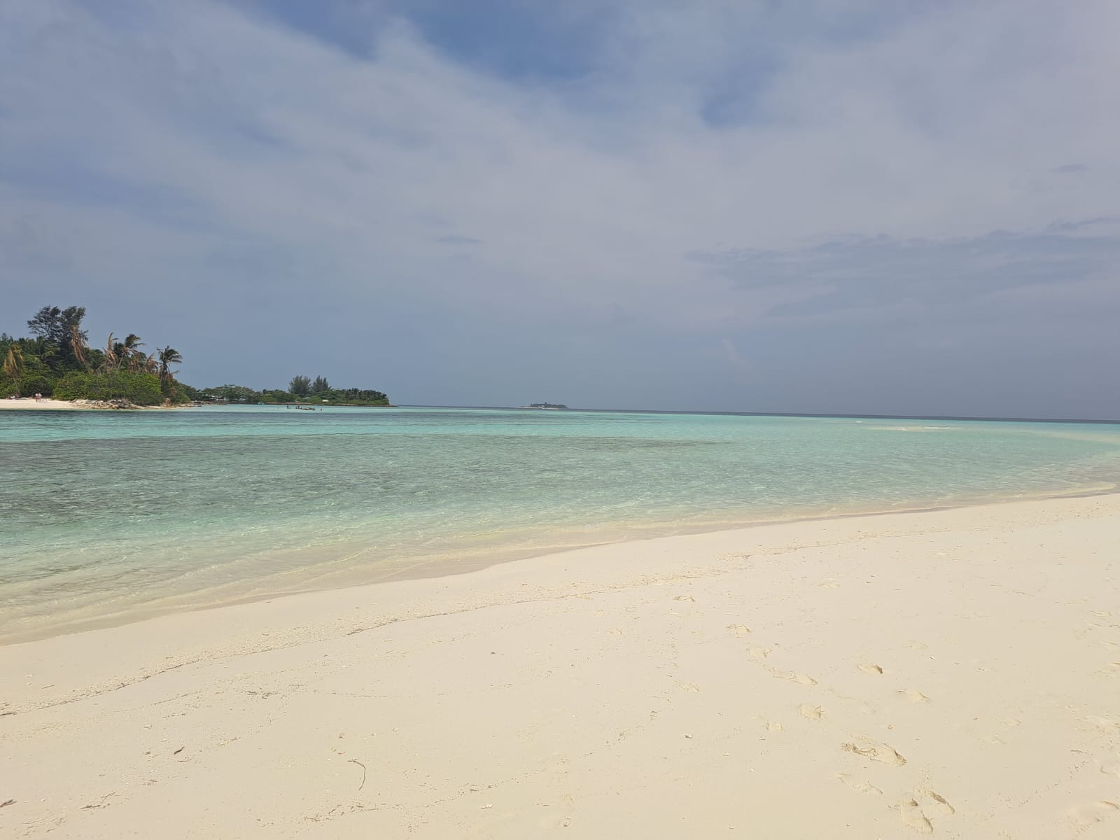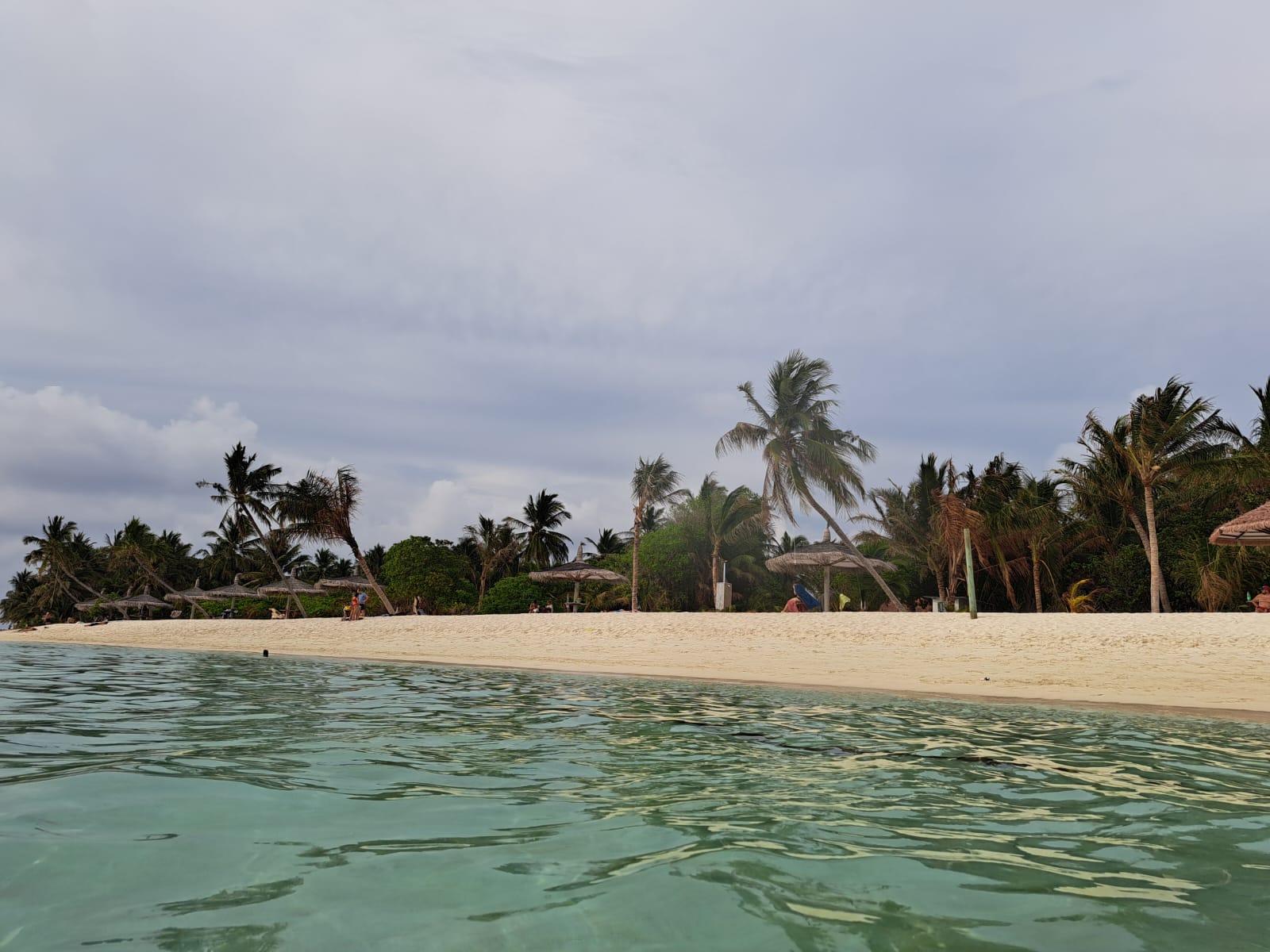 Rasdhoo, sin embargo, no es solo para expertos del buceo. Su bikini beach ofrece un snorkel accesible, lleno de corales que se recuperan poco a poco y peces que colorean cada rincón. En sus aguas tranquilas suelen verse tortugas, tiburones de arrecife juveniles y rayas que se deslizan cerca de la arena. La playa tiene ese azul intenso que parece editado, pero no lo está: simplemente forma parte de la paleta natural de esta zona del atolón.