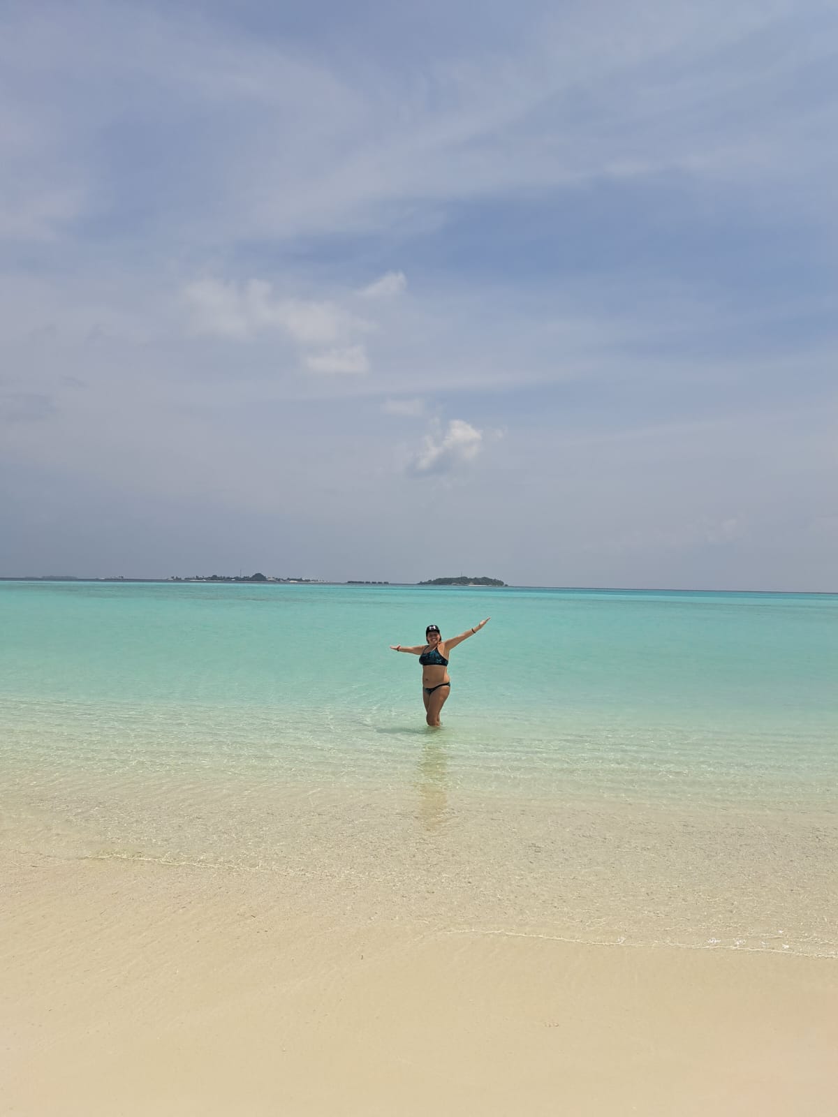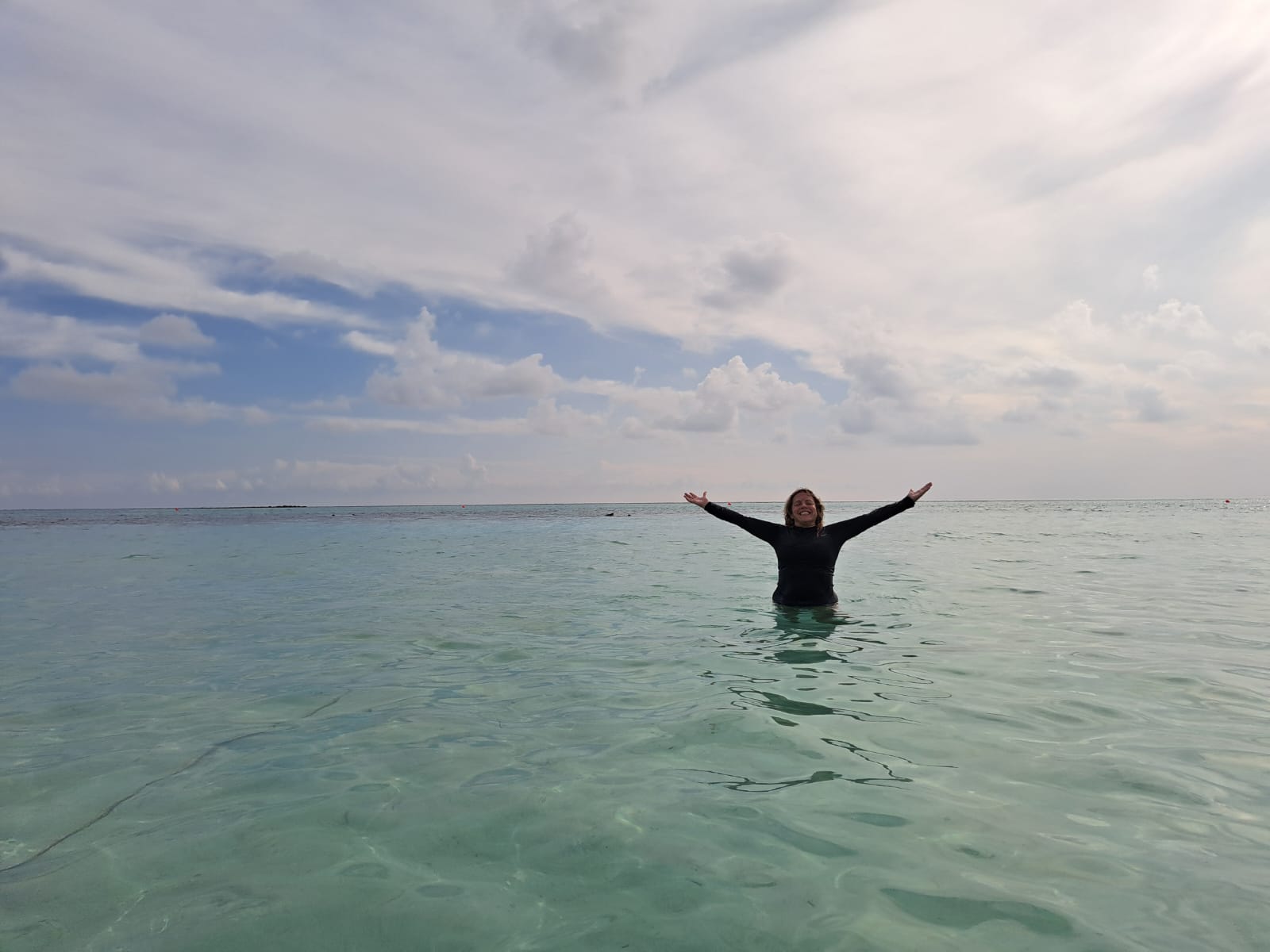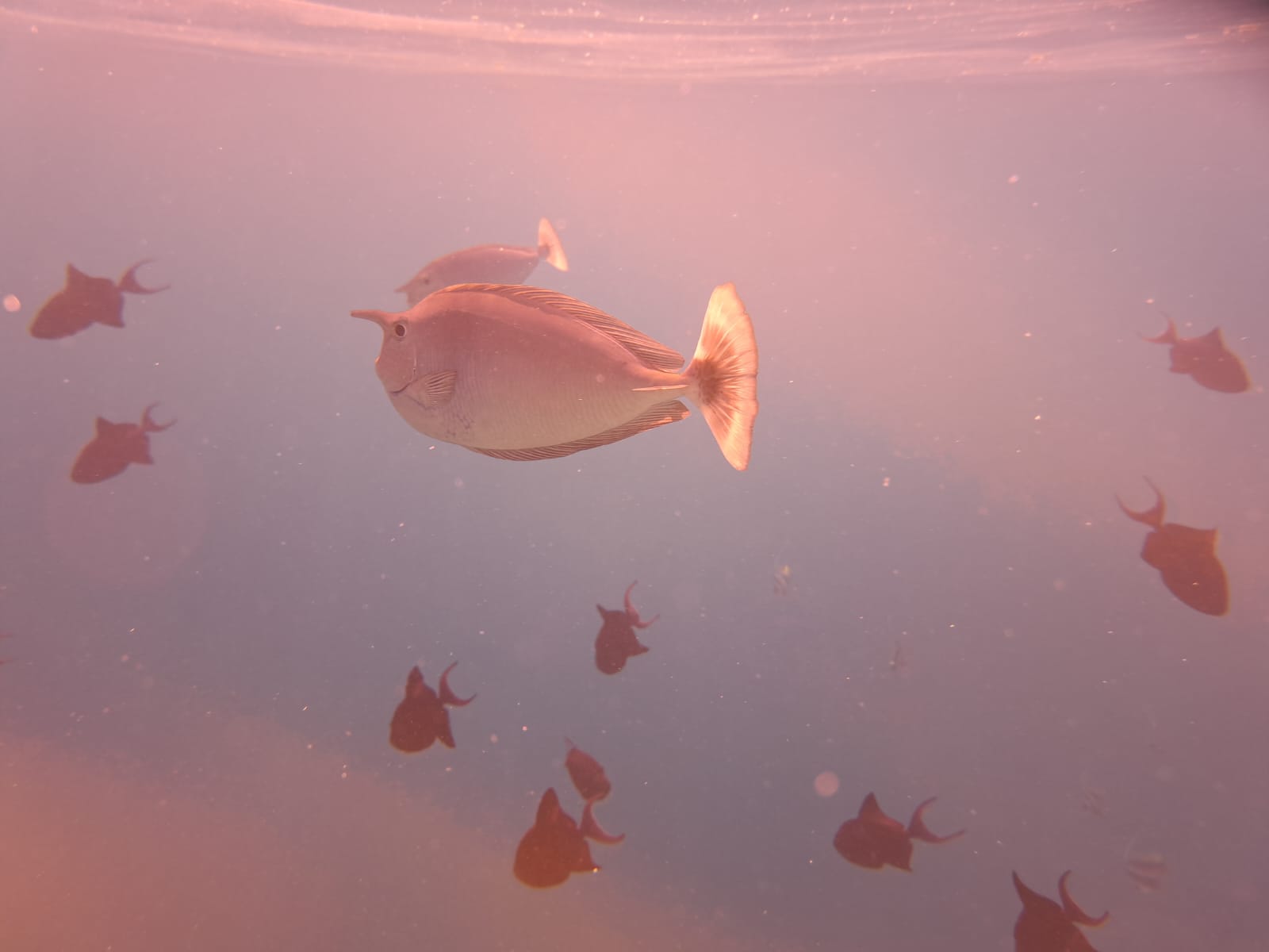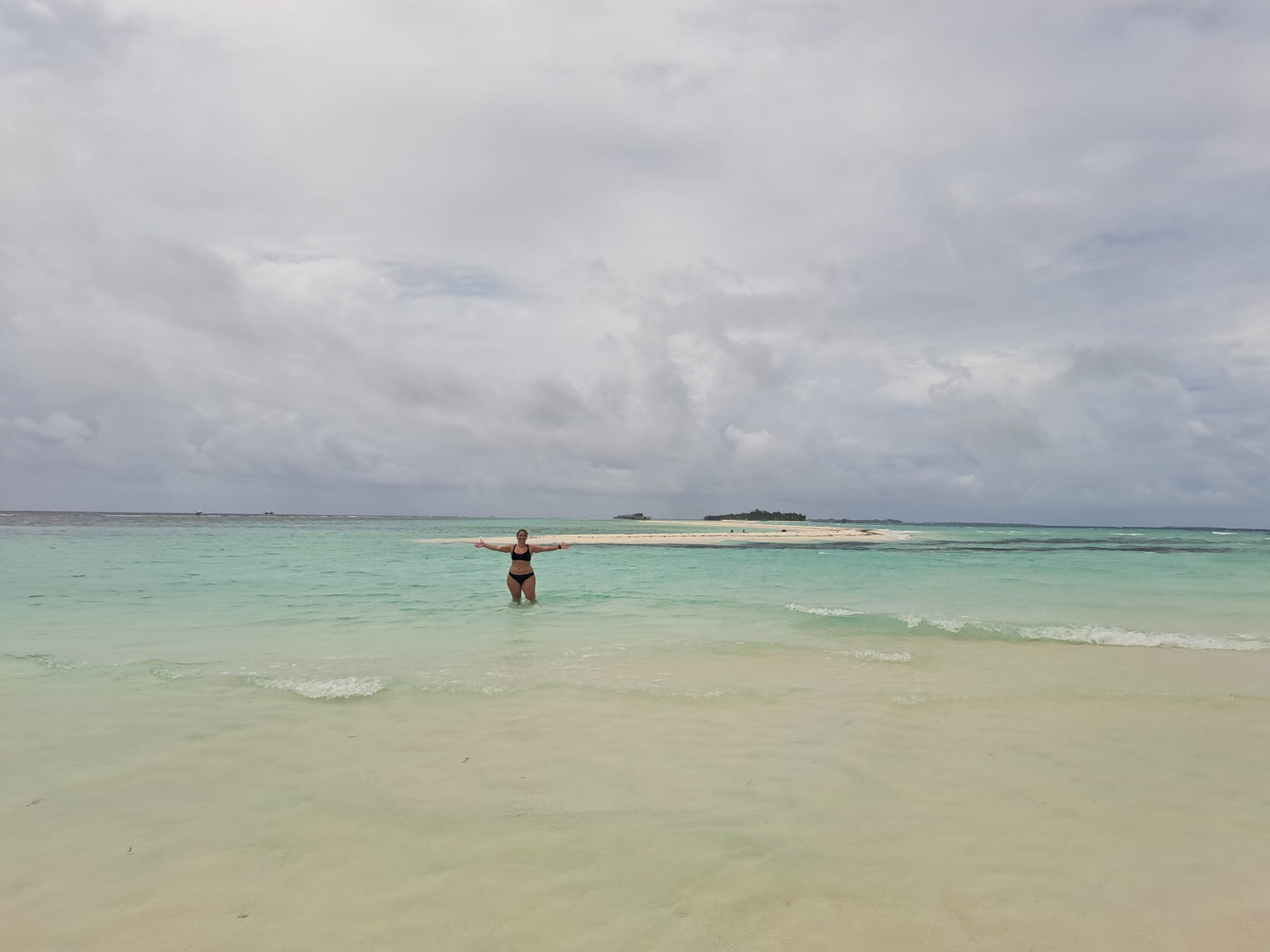 Rasdhoo, sin embargo, no es solo para expertos del buceo. Su bikini beach ofrece un snorkel accesible, lleno de corales que se recuperan poco a poco y peces que colorean cada rincón. En sus aguas tranquilas suelen verse tortugas, tiburones de arrecife juveniles y rayas que se deslizan cerca de la arena. La playa tiene ese azul intenso que parece editado, pero no lo está: simplemente forma parte de la paleta natural de esta zona del atolón.