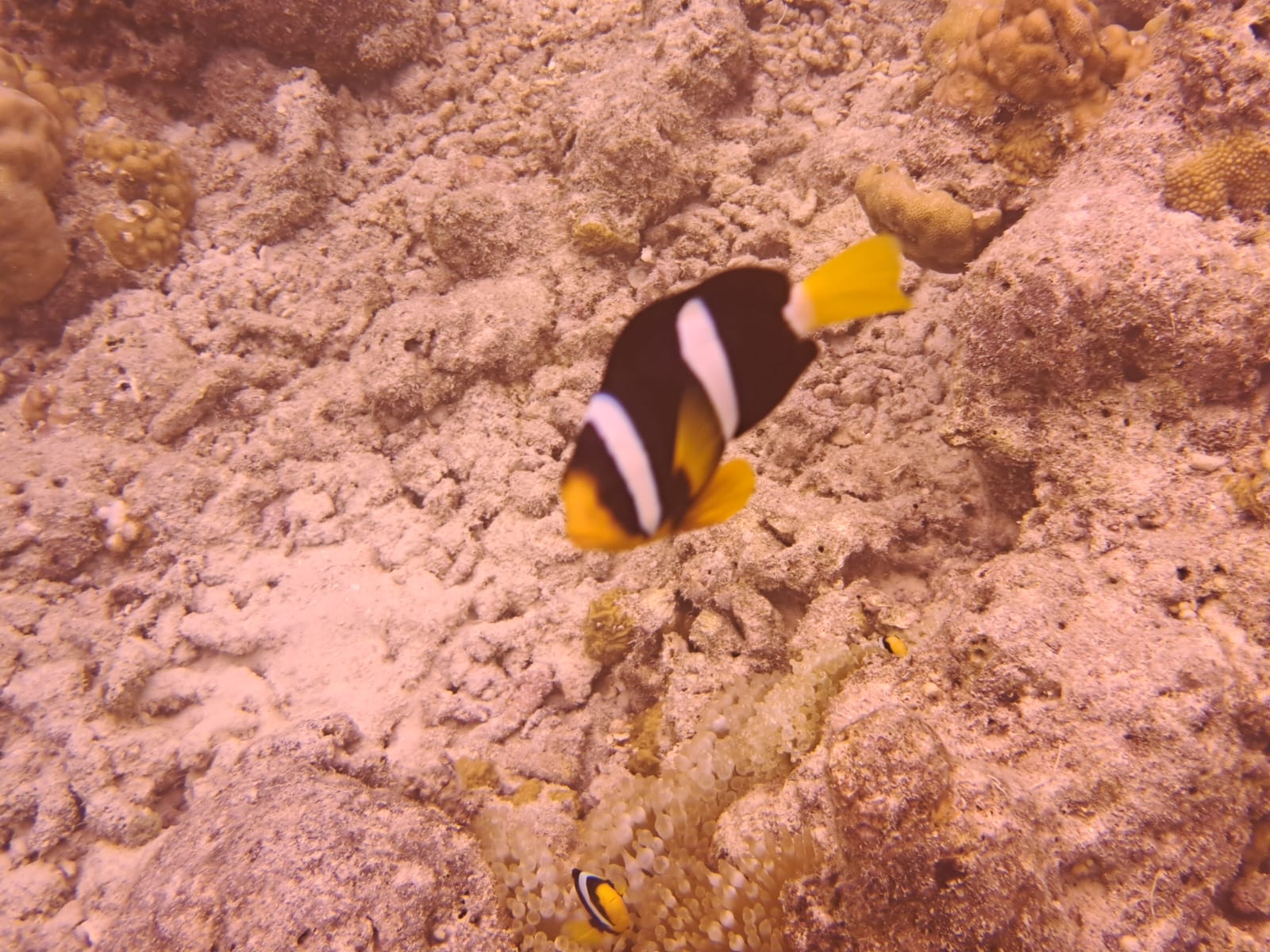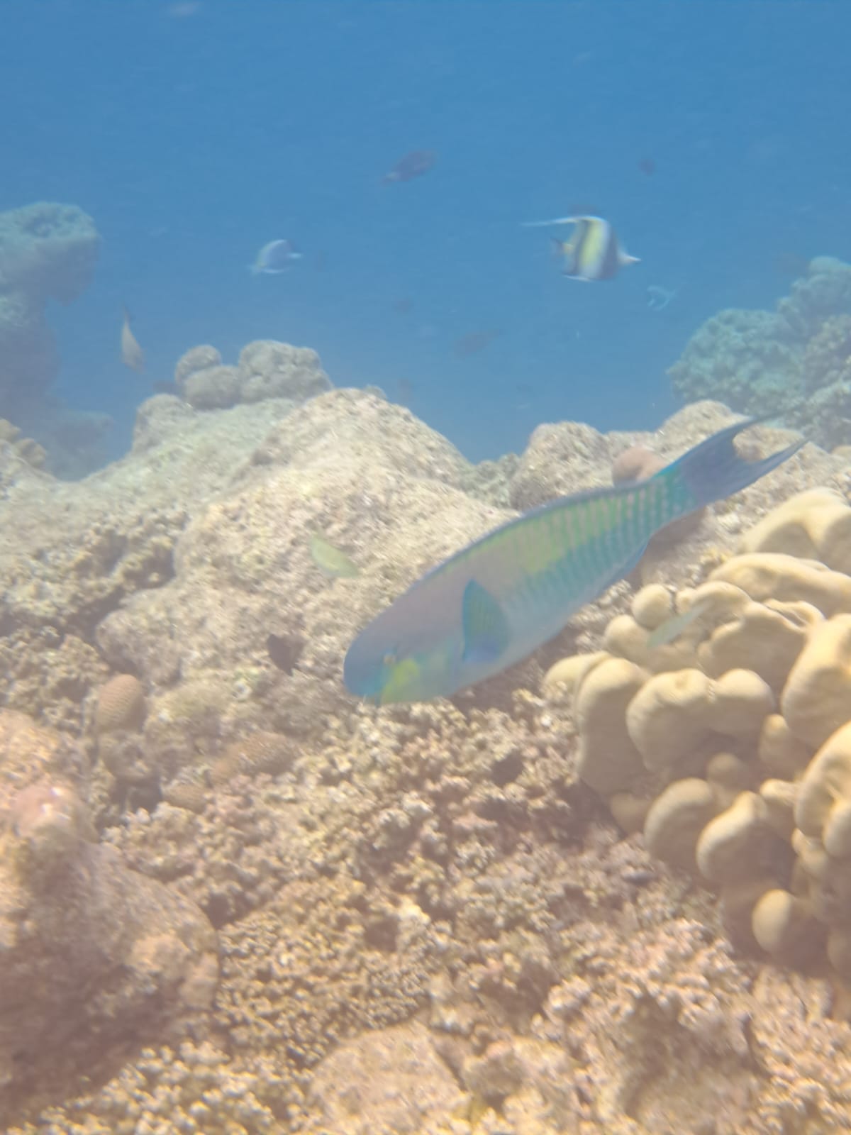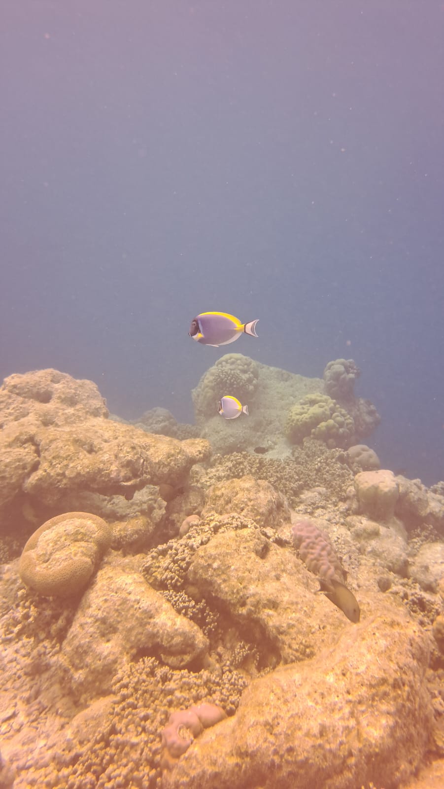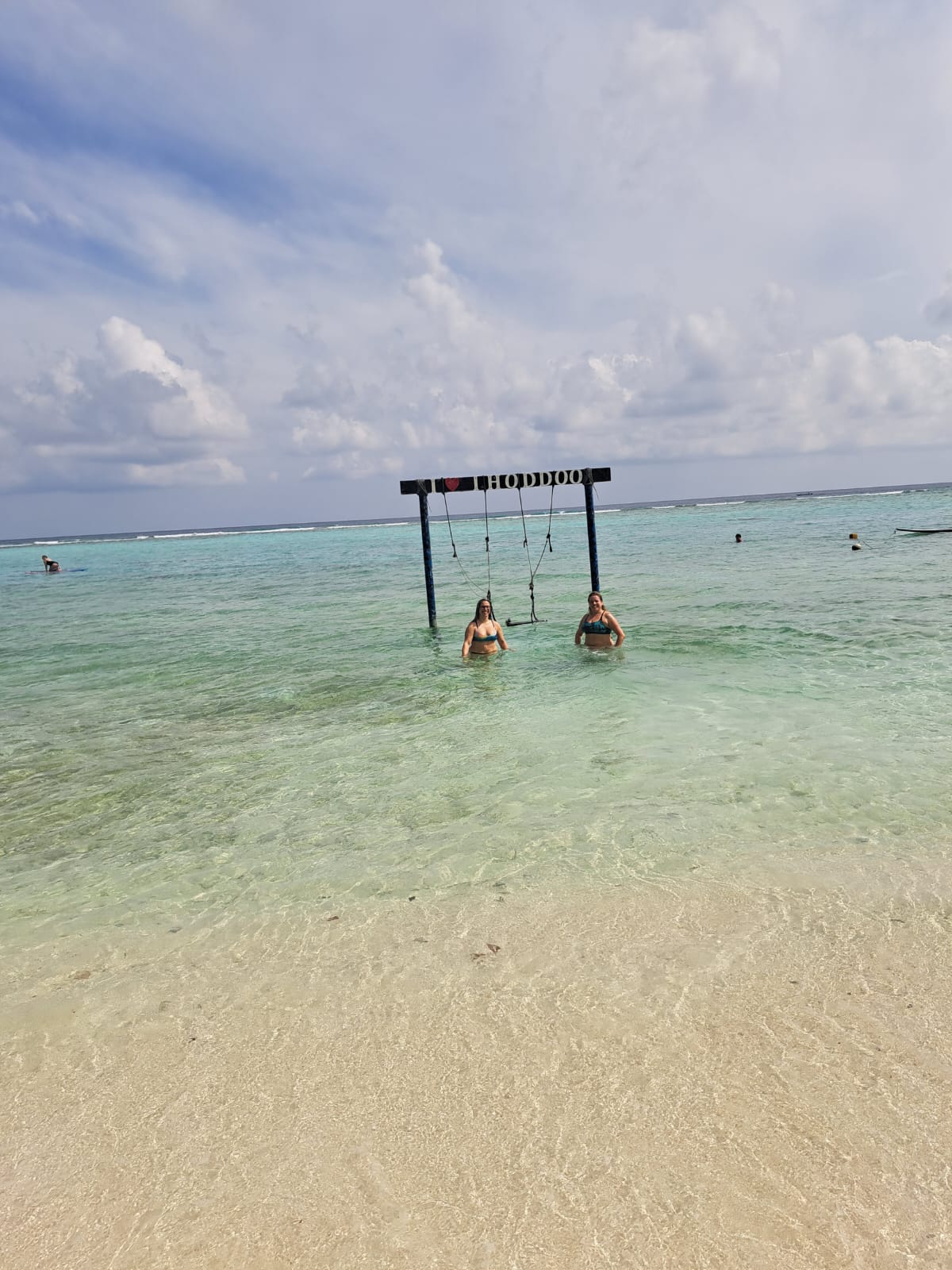 Rasdhoo, sin embargo, no es solo para expertos del buceo. Su bikini beach ofrece un snorkel accesible, lleno de corales que se recuperan poco a poco y peces que colorean cada rincón. En sus aguas tranquilas suelen verse tortugas, tiburones de arrecife juveniles y rayas que se deslizan cerca de la arena. La playa tiene ese azul intenso que parece editado, pero no lo está: simplemente forma parte de la paleta natural de esta zona del atolón.