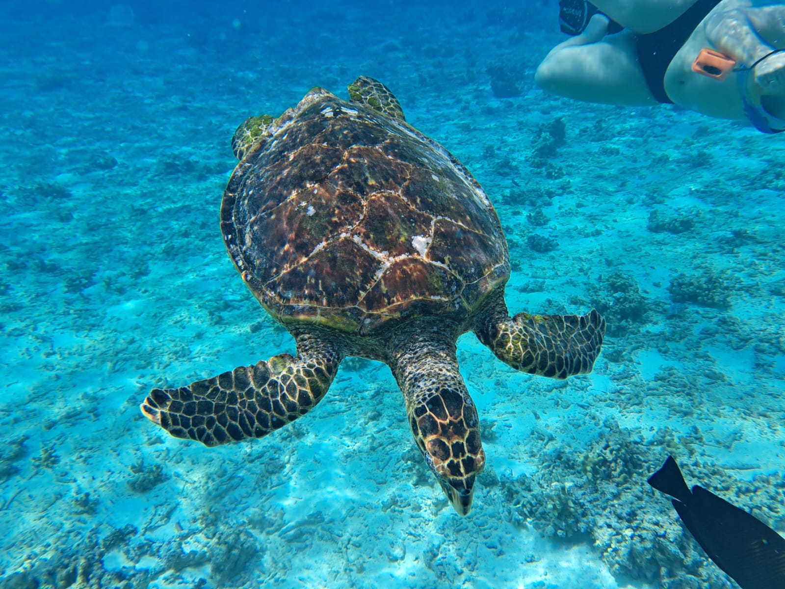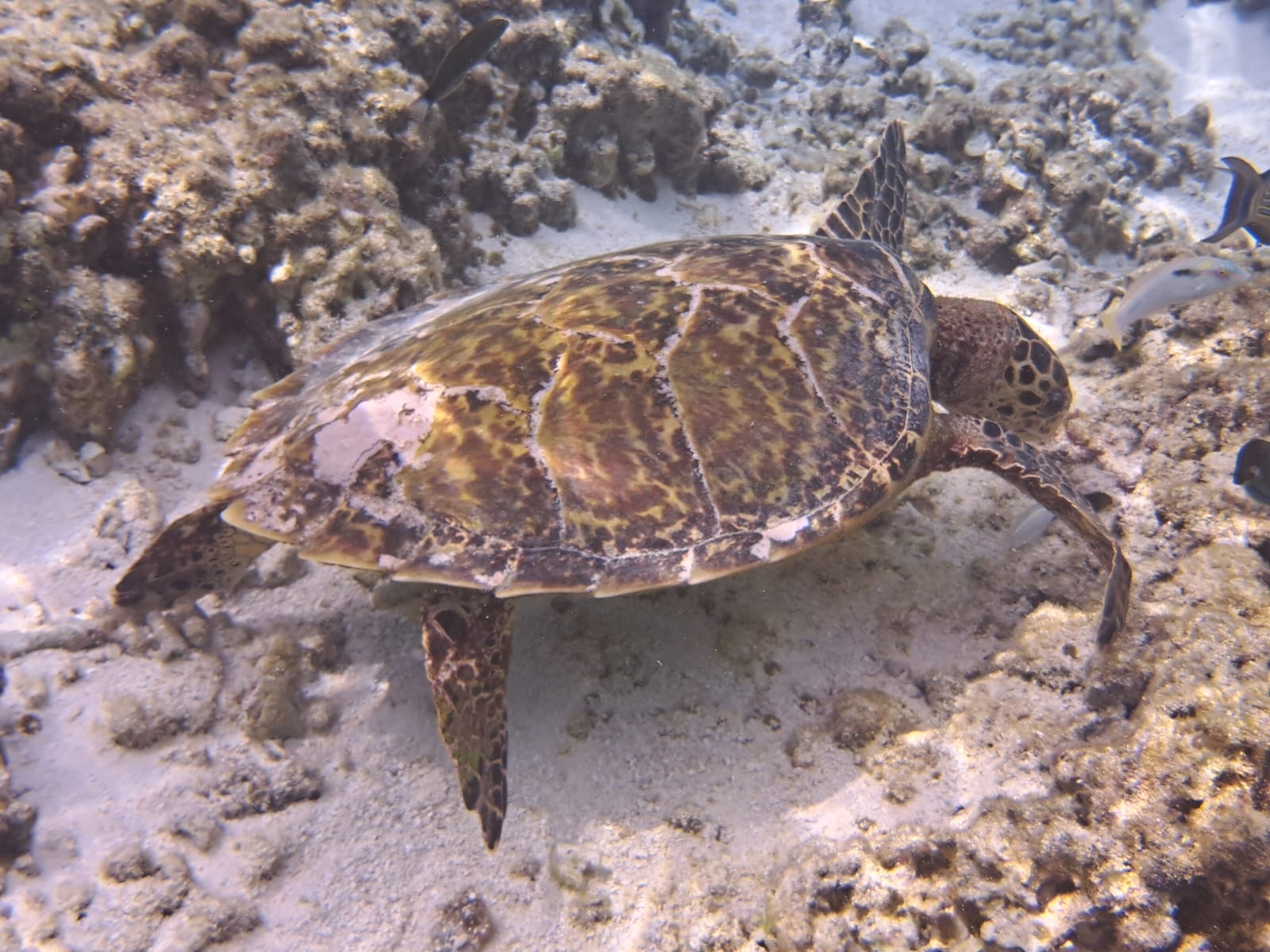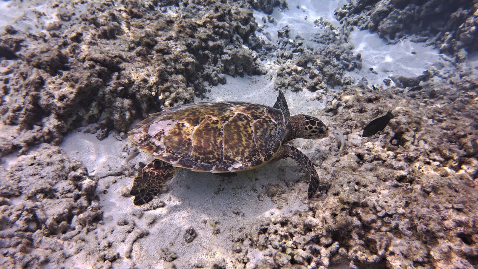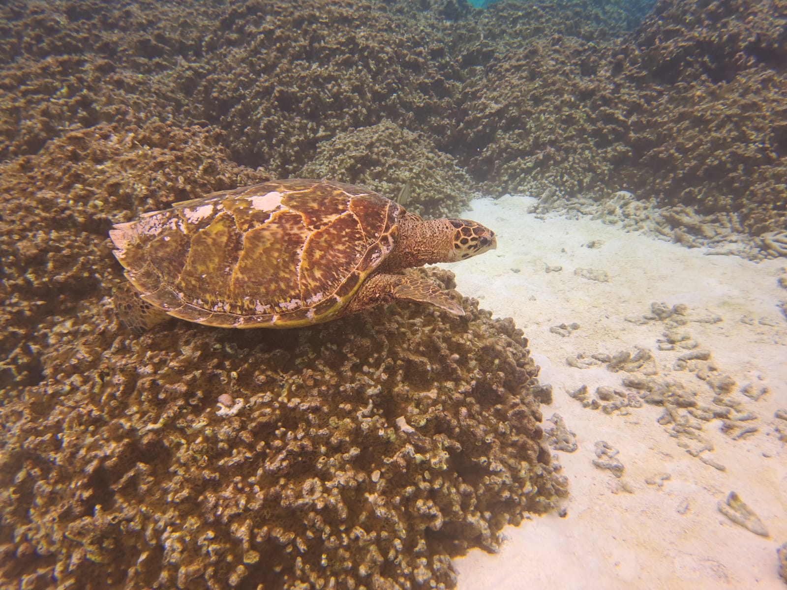Pero la verdadera magia de Thoddoo está bajo el agua. Su bikini beach es un punto excelente para ver tortugas verdes nadando entre corales a poca profundidad. Basta ponerse la máscara y avanzar unos metros para encontrarse en un escenario digno de un documental.
