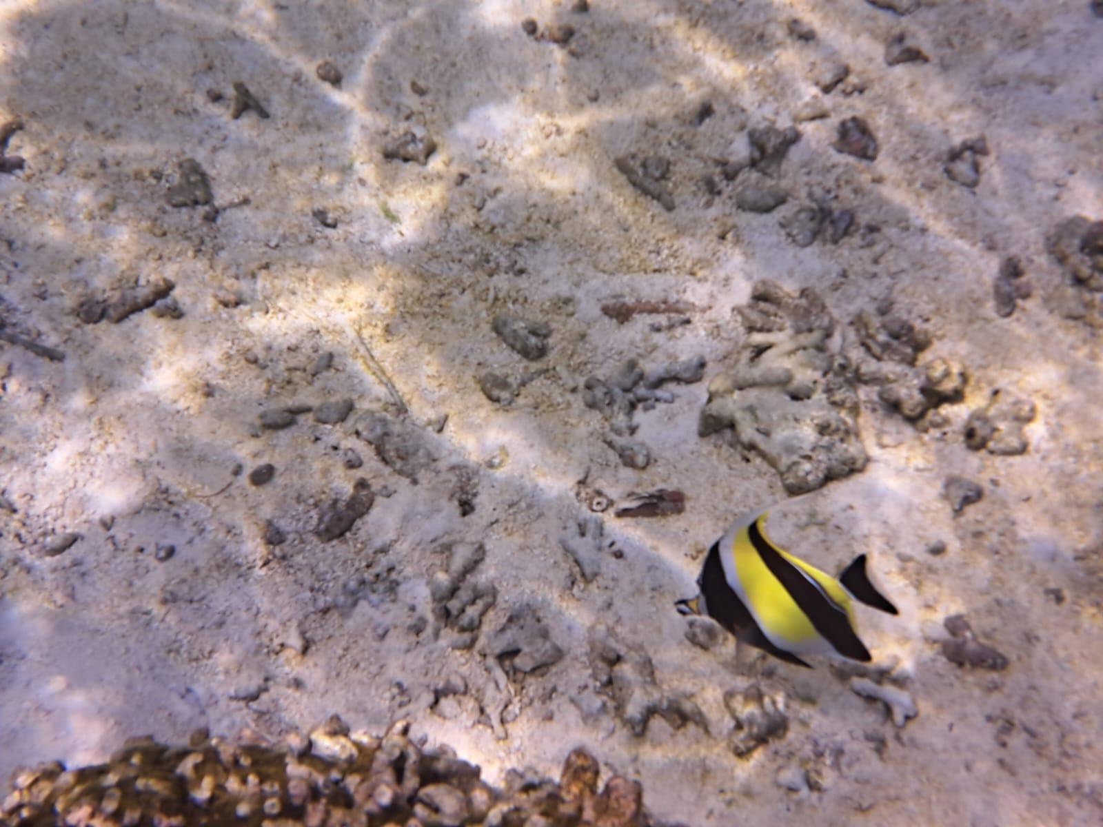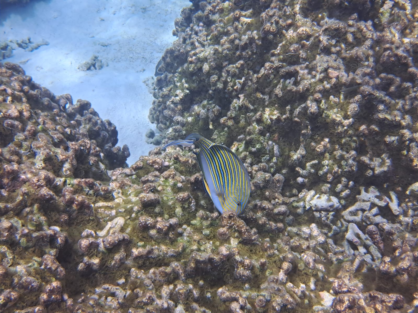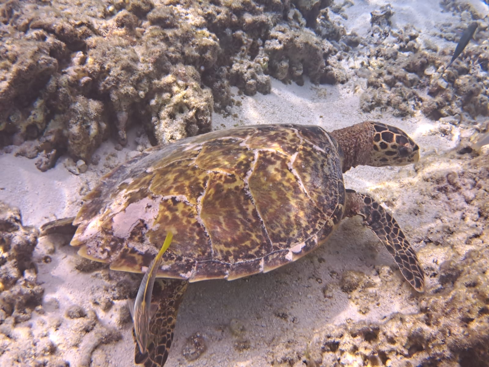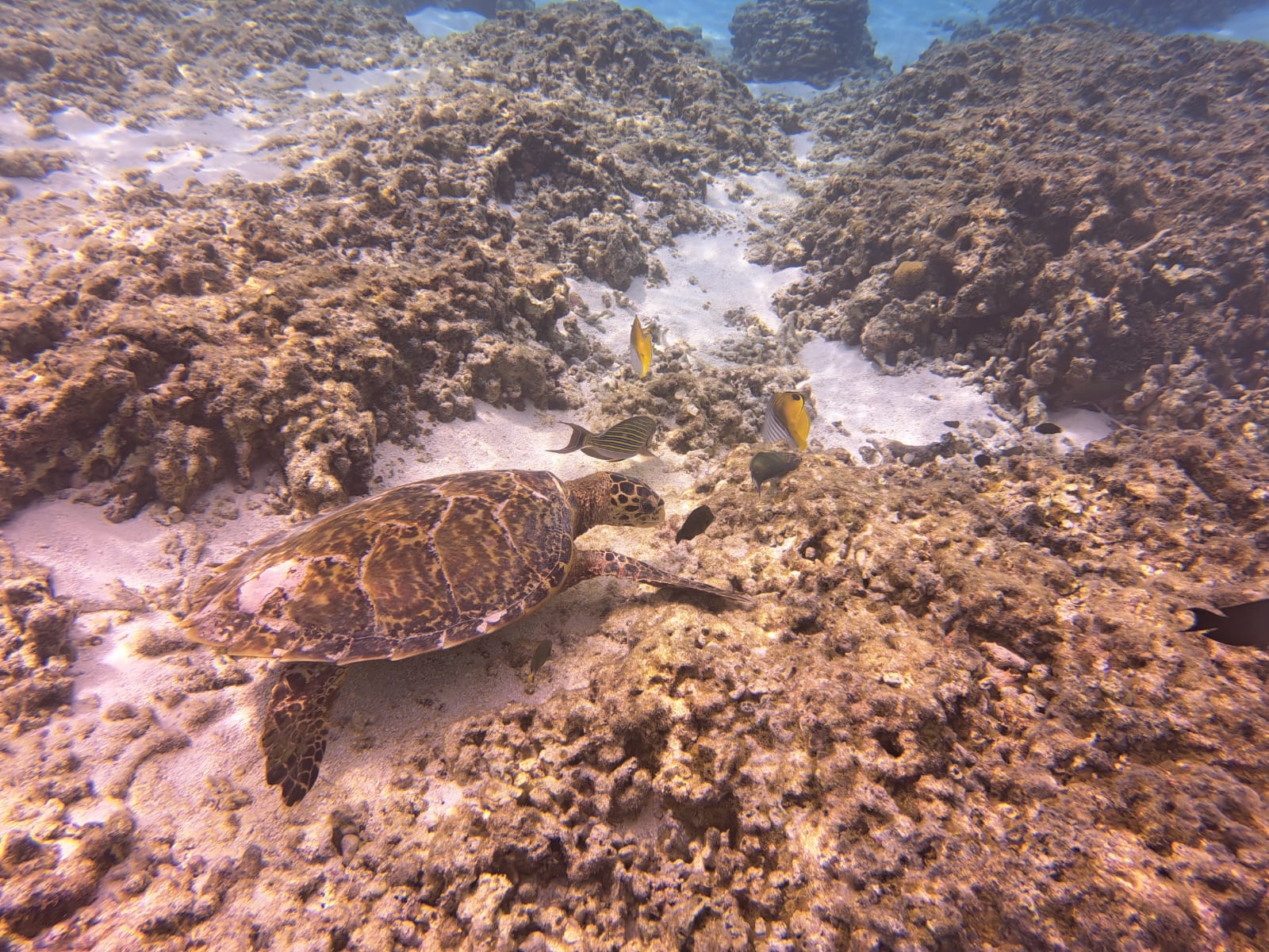 Pero la verdadera magia de Thoddoo está bajo el agua. Su bikini beach es un punto excelente para ver tortugas verdes nadando entre corales a poca profundidad. Basta ponerse la máscara y avanzar unos metros para encontrarse en un escenario digno de un documental.