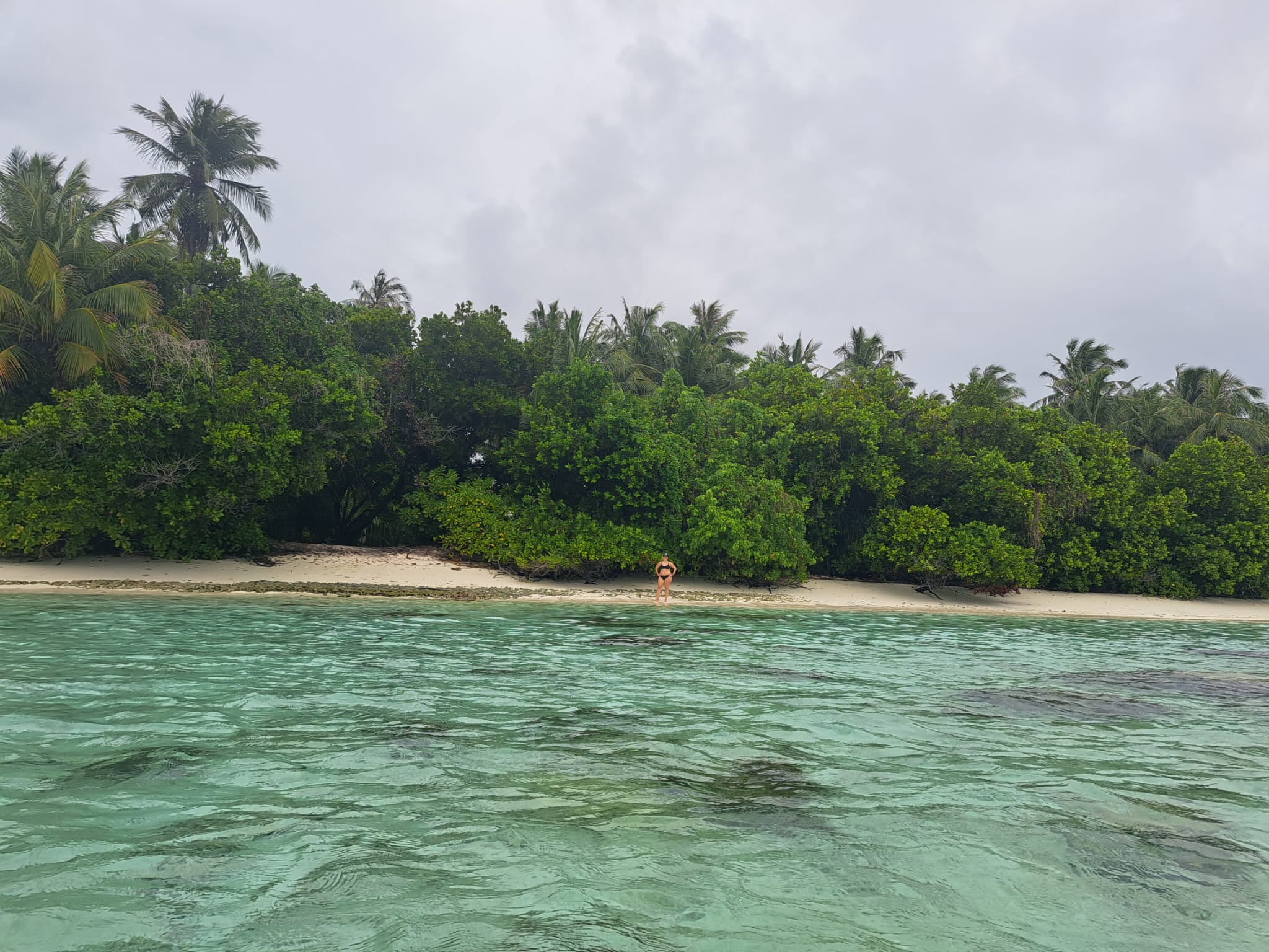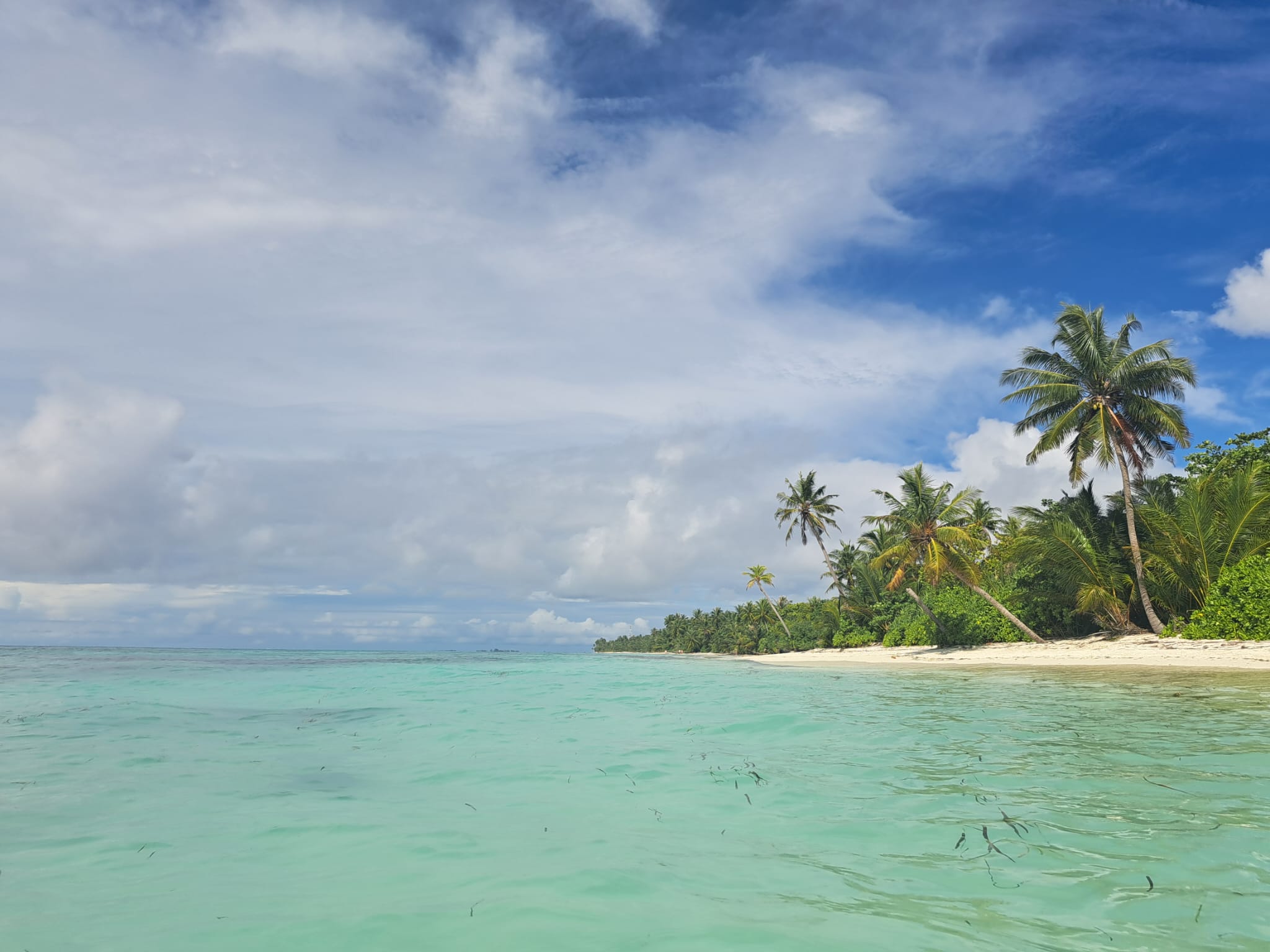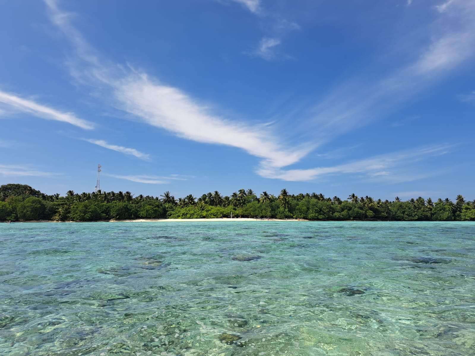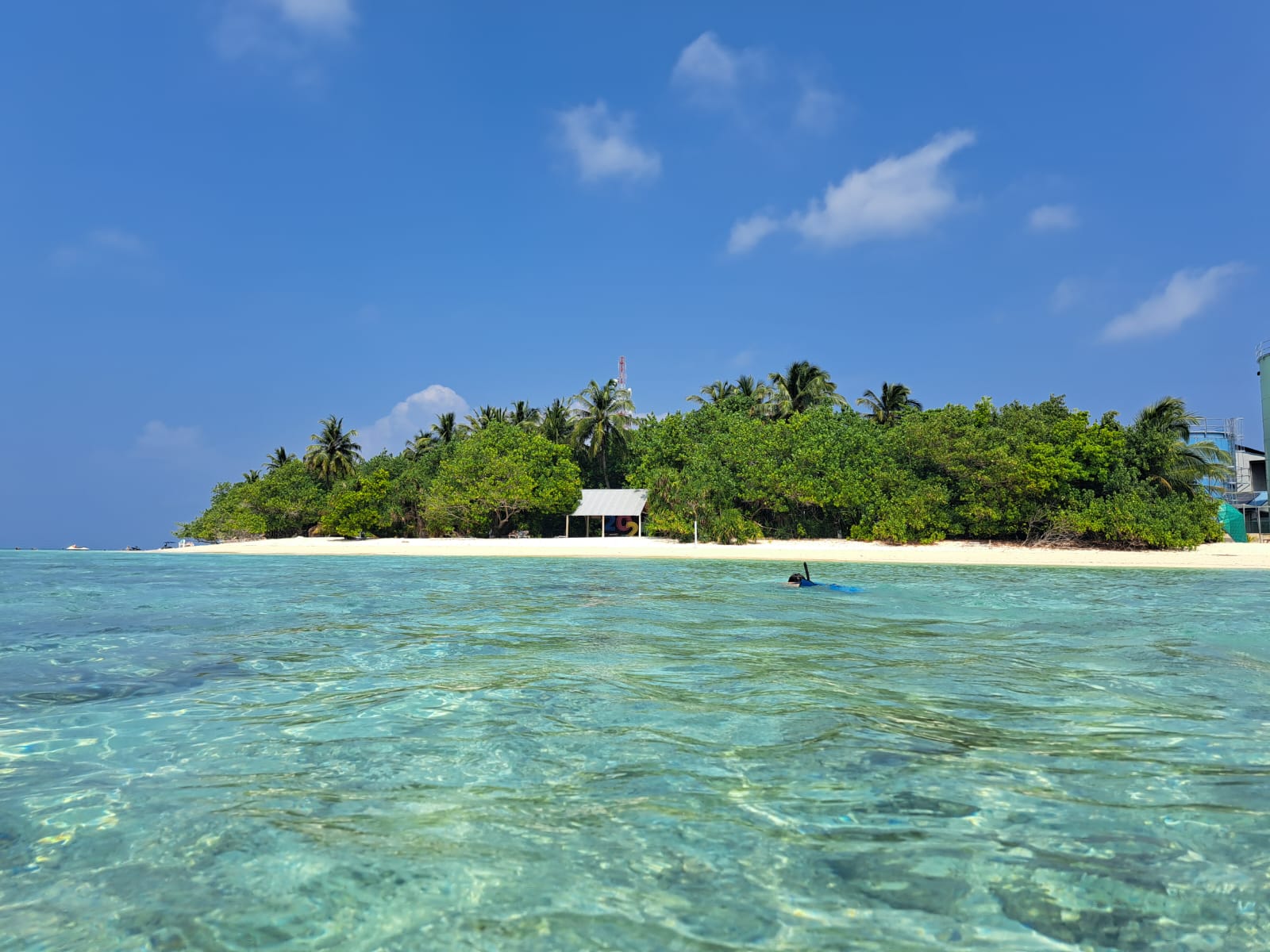 Nuestro viaje comienza en Thoddoo, una isla que mezcla plantaciones de frutas, playas casi desiertas y uno de los mejores snorkels desde la orilla de todo el país.
