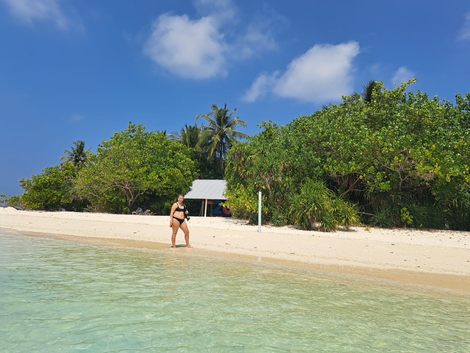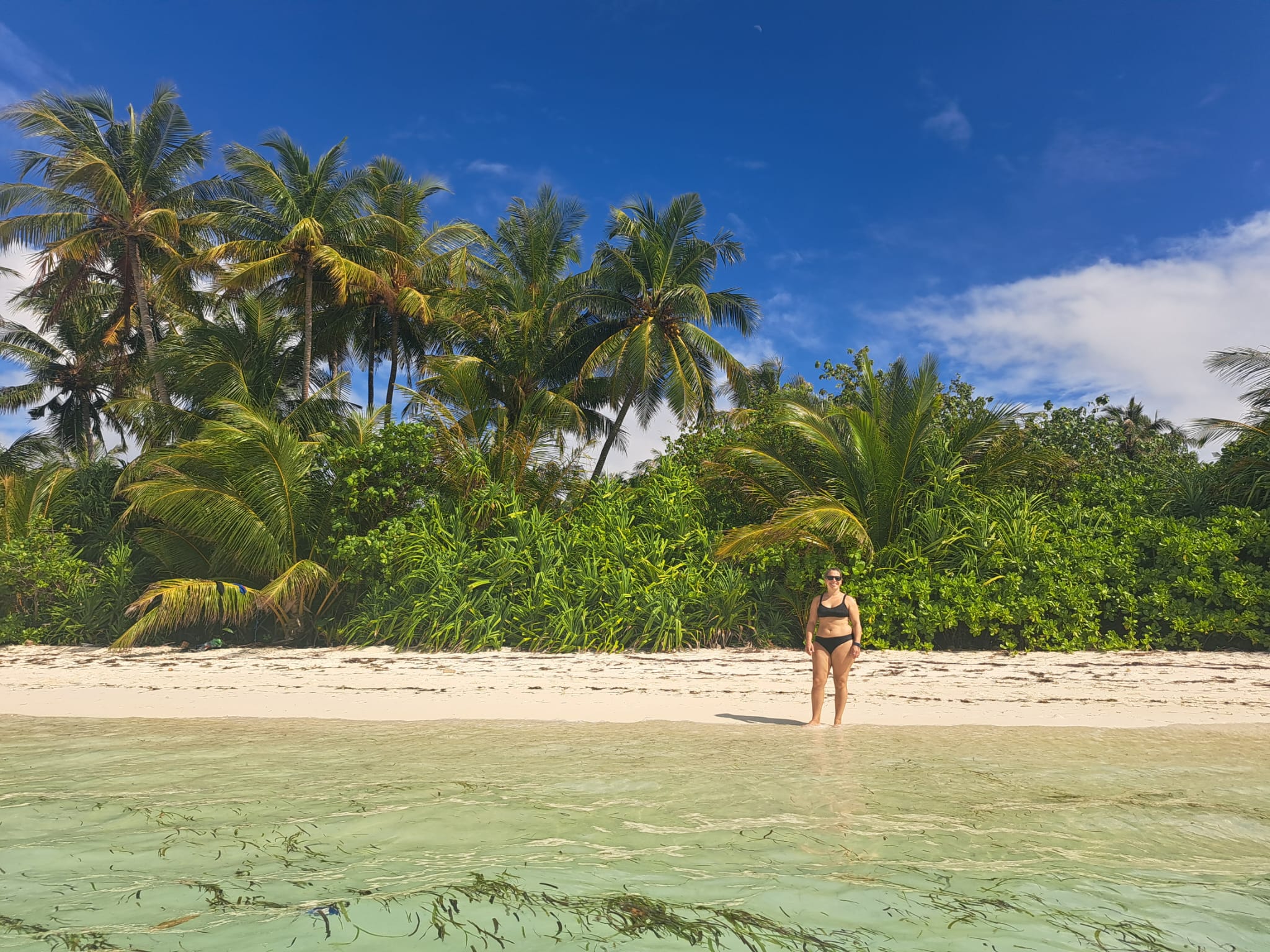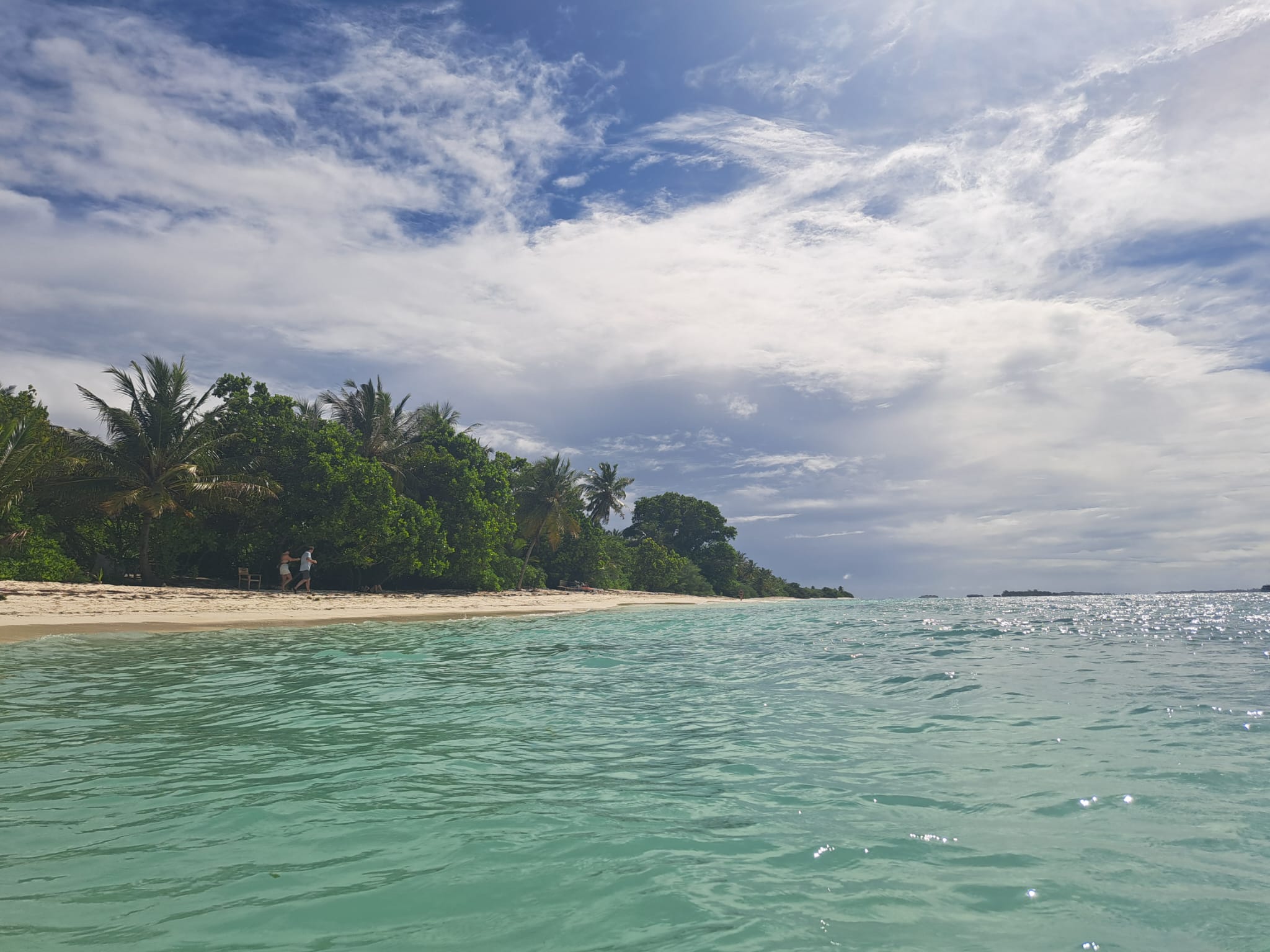 Nuestro viaje comienza en Thoddoo, una isla que mezcla plantaciones de frutas, playas casi desiertas y uno de los mejores snorkels desde la orilla de todo el país.