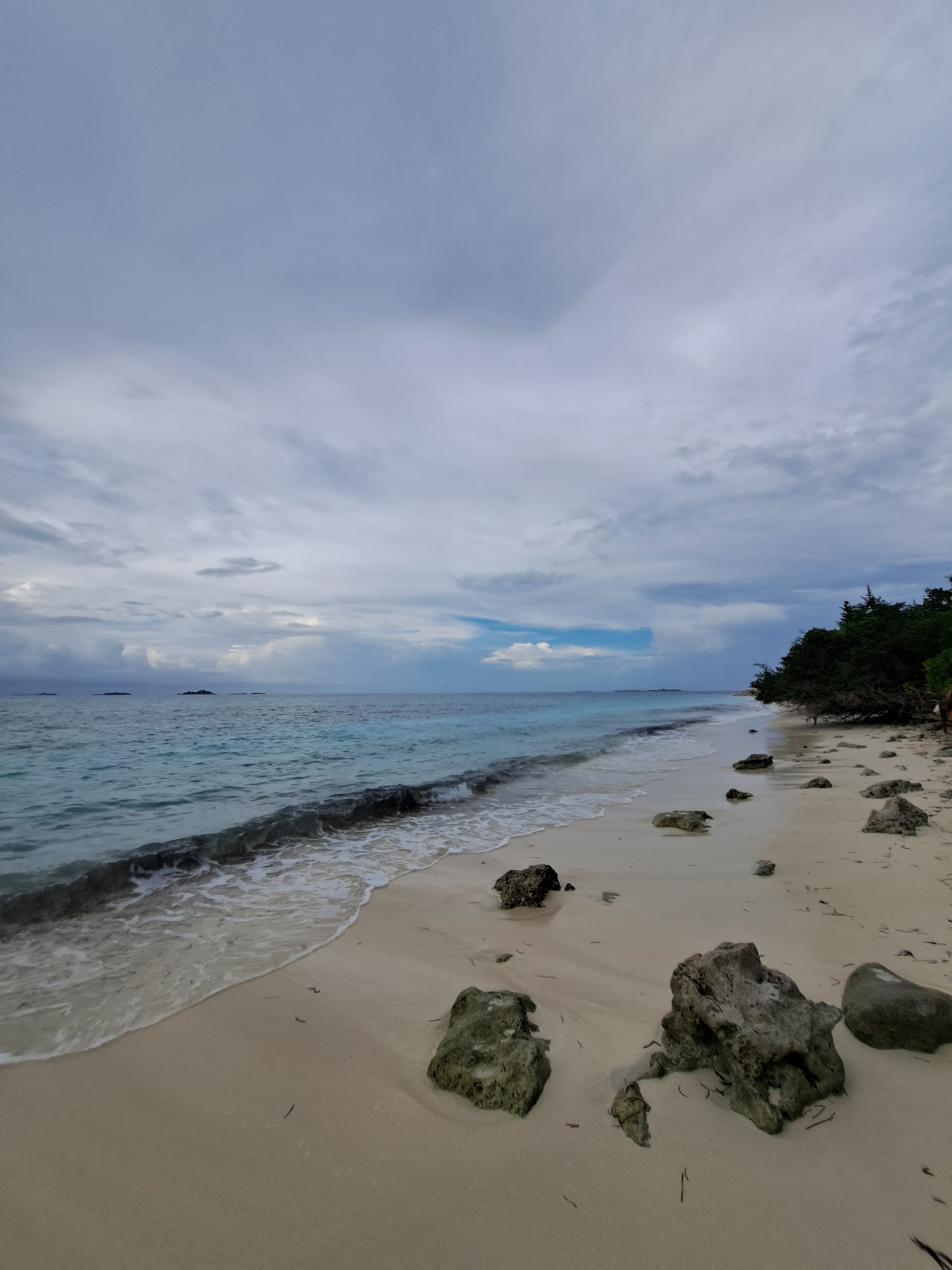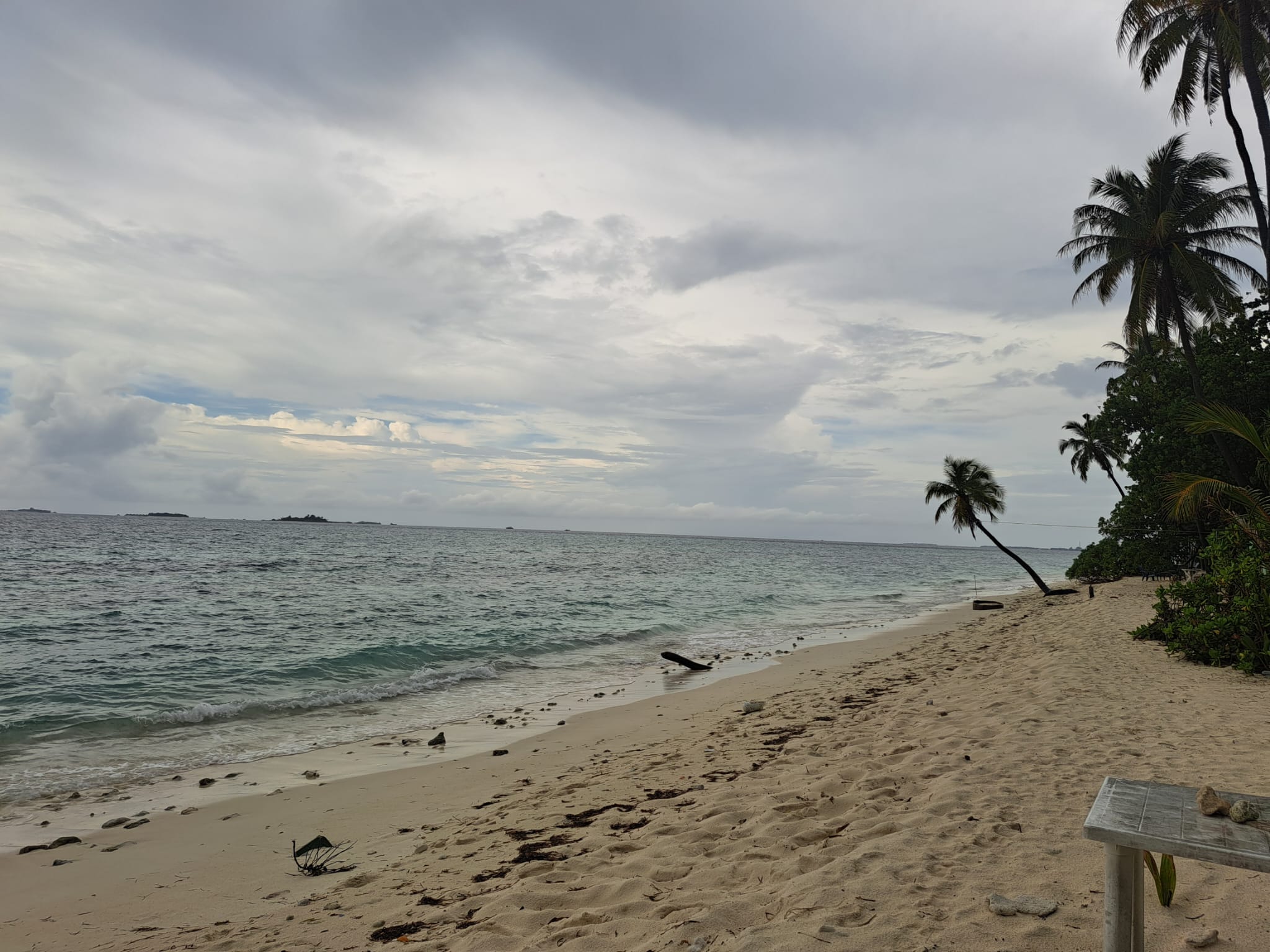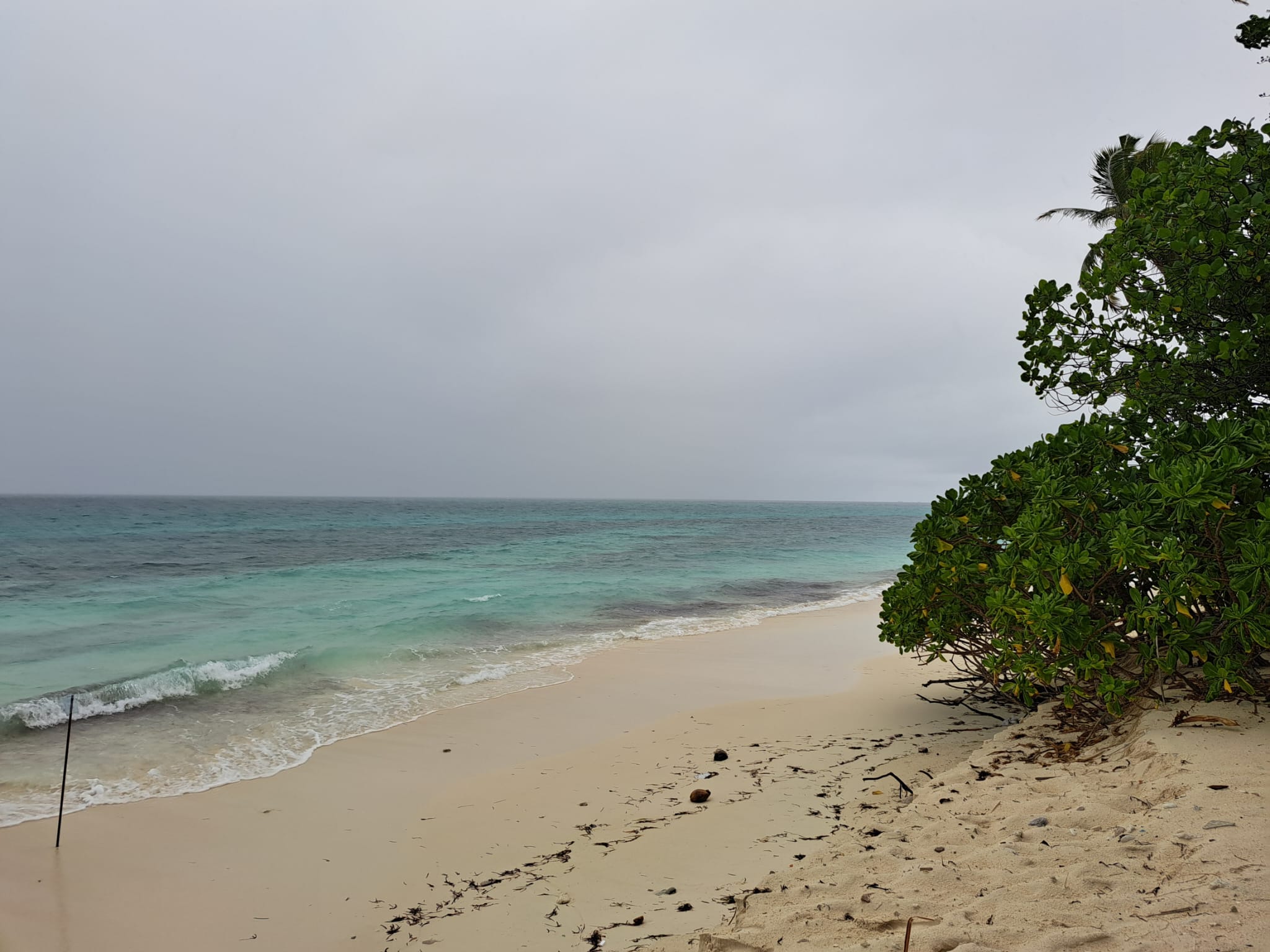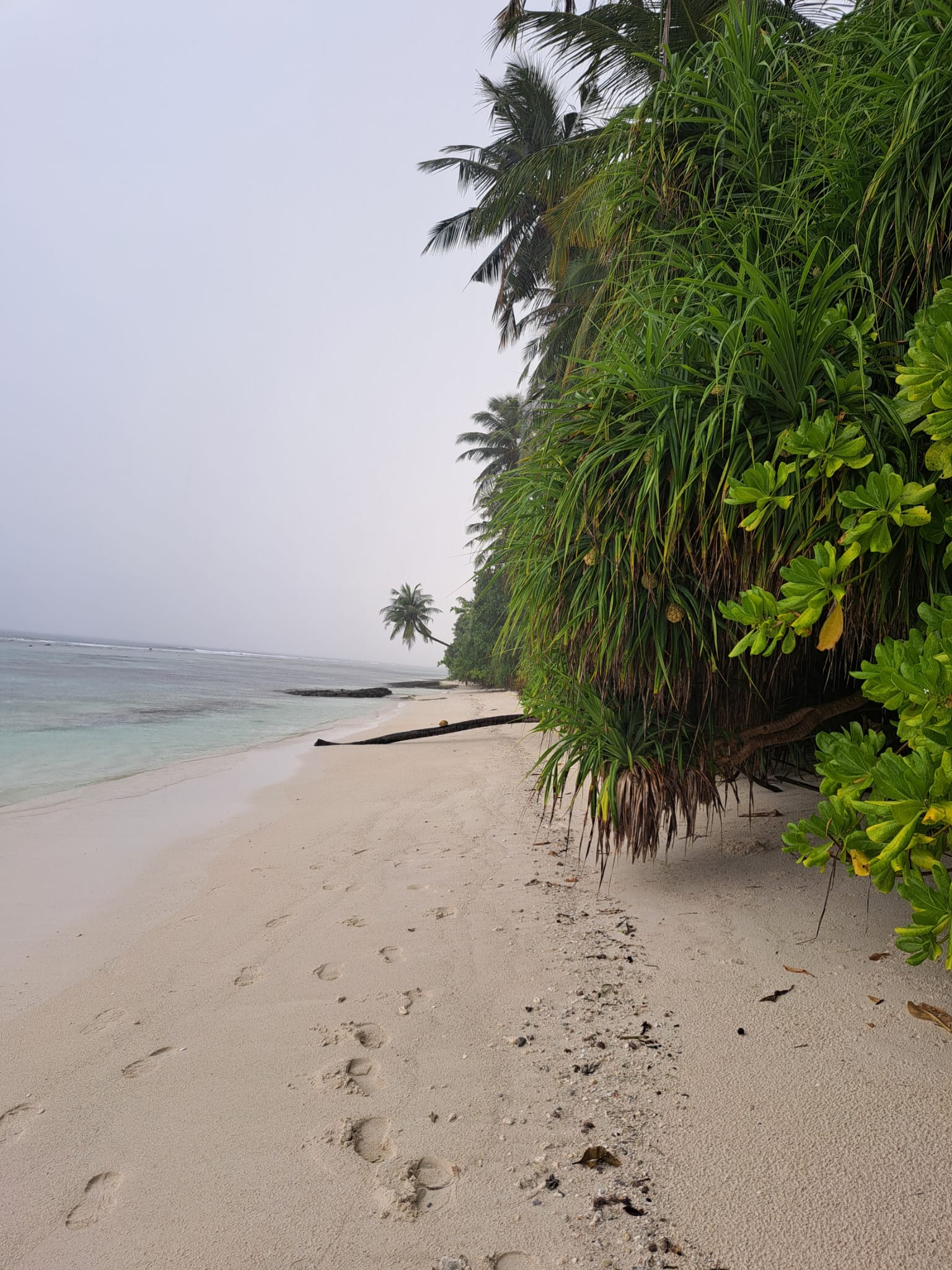 Nuestro viaje comienza en Thoddoo, una isla que mezcla plantaciones de frutas, playas casi desiertas y uno de los mejores snorkels desde la orilla de todo el país.