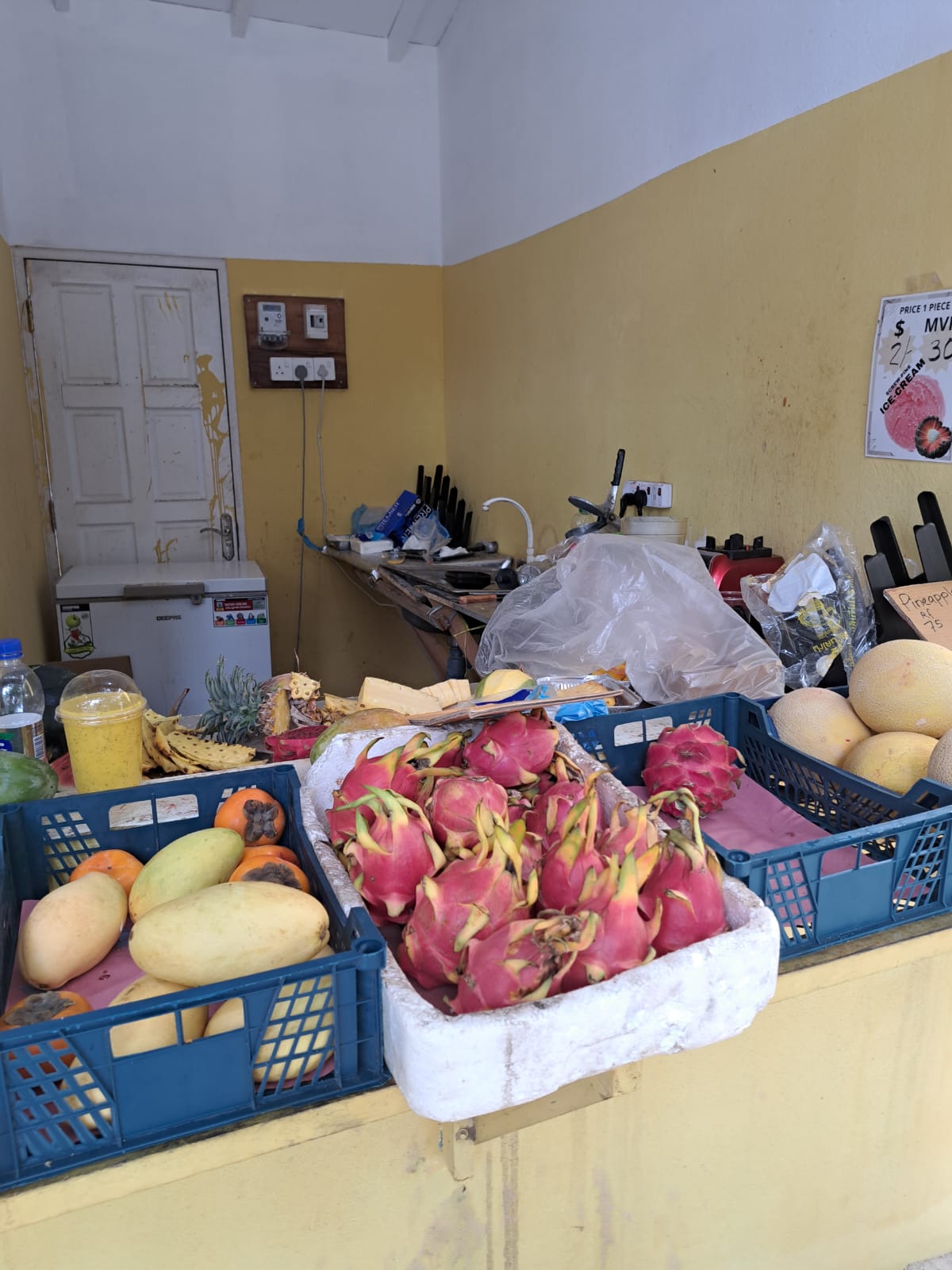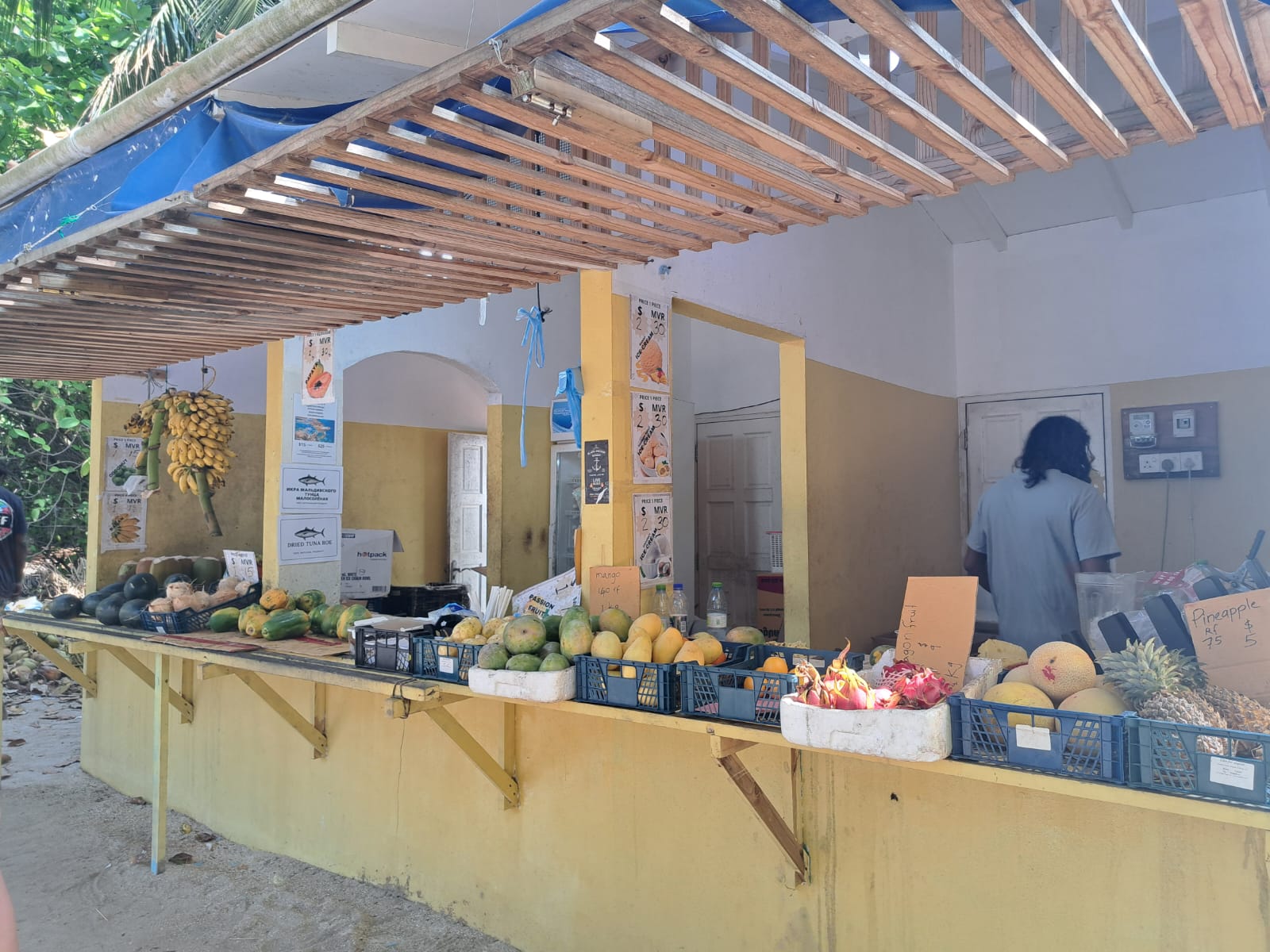 Thoddoo es conocida como el huerto de las Maldivas: a medida que caminas entre sus senderos de arena, os acompañan cultivos de papaya, mango y, por supuesto, sandías, su producto estrella. Todo aquí es tranquilo, casi meditativo, como si la isla invitara a bajar el ritmo desde el primer minuto.