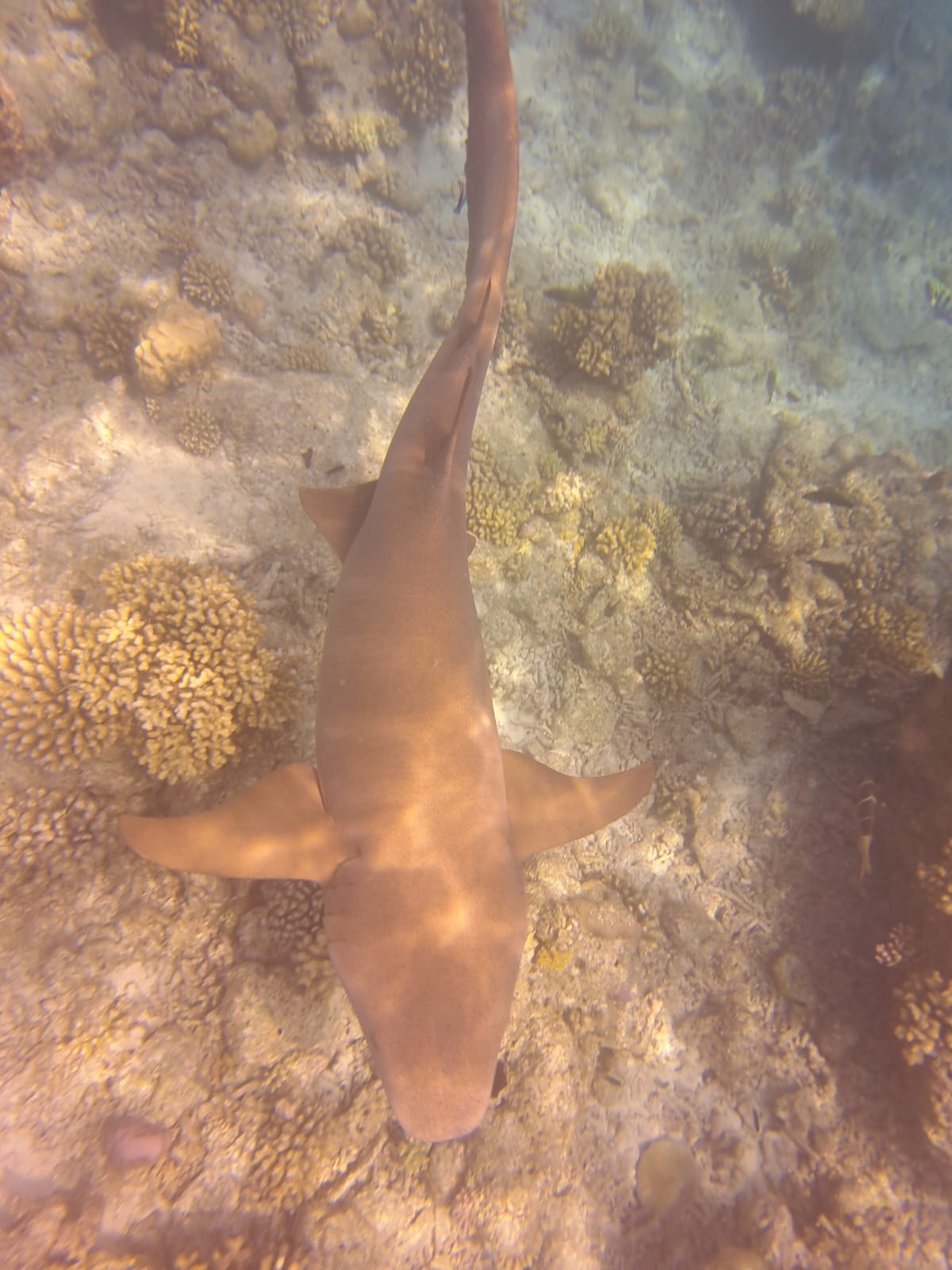 Nadar con tiburones ballena es una experiencia casi espiritual. Desde Dhigurah las excursiones parten diariamente y no es raro que, a los pocos minutos de navegar, aparezca un gigante moteado a escasos metros de la superficie. Saltar al agua y nadar junto a él es algo que se queda grabado para siempre, no solo por su tamaño, sino por la serenidad con la que se mueve.