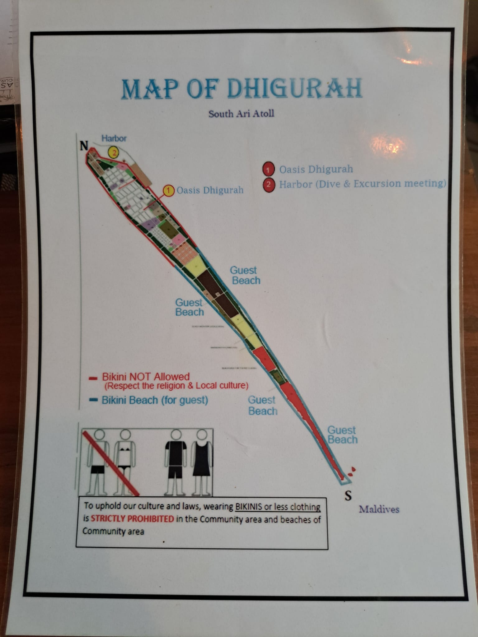 El alcohol está restringido a resorts o zonas autorizadas. Los viajeros deben respetar la vida marina: no tocar corales, no interferir con tiburones o mantas y seguir las indicaciones de guías durante excursiones.
