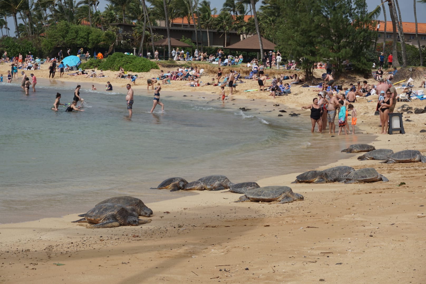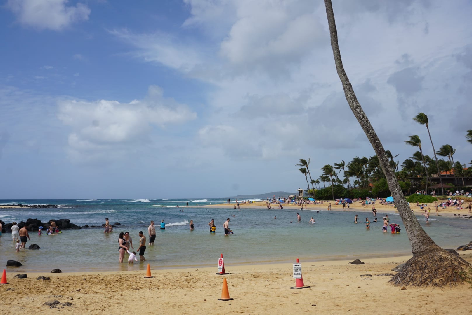 Poipu Beach es una de las playas más populares del sur de Kauai, famosa por sus aguas tranquilas y su ambiente familiar.