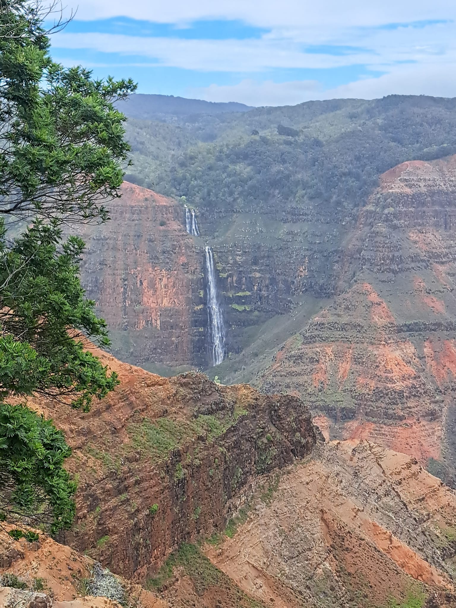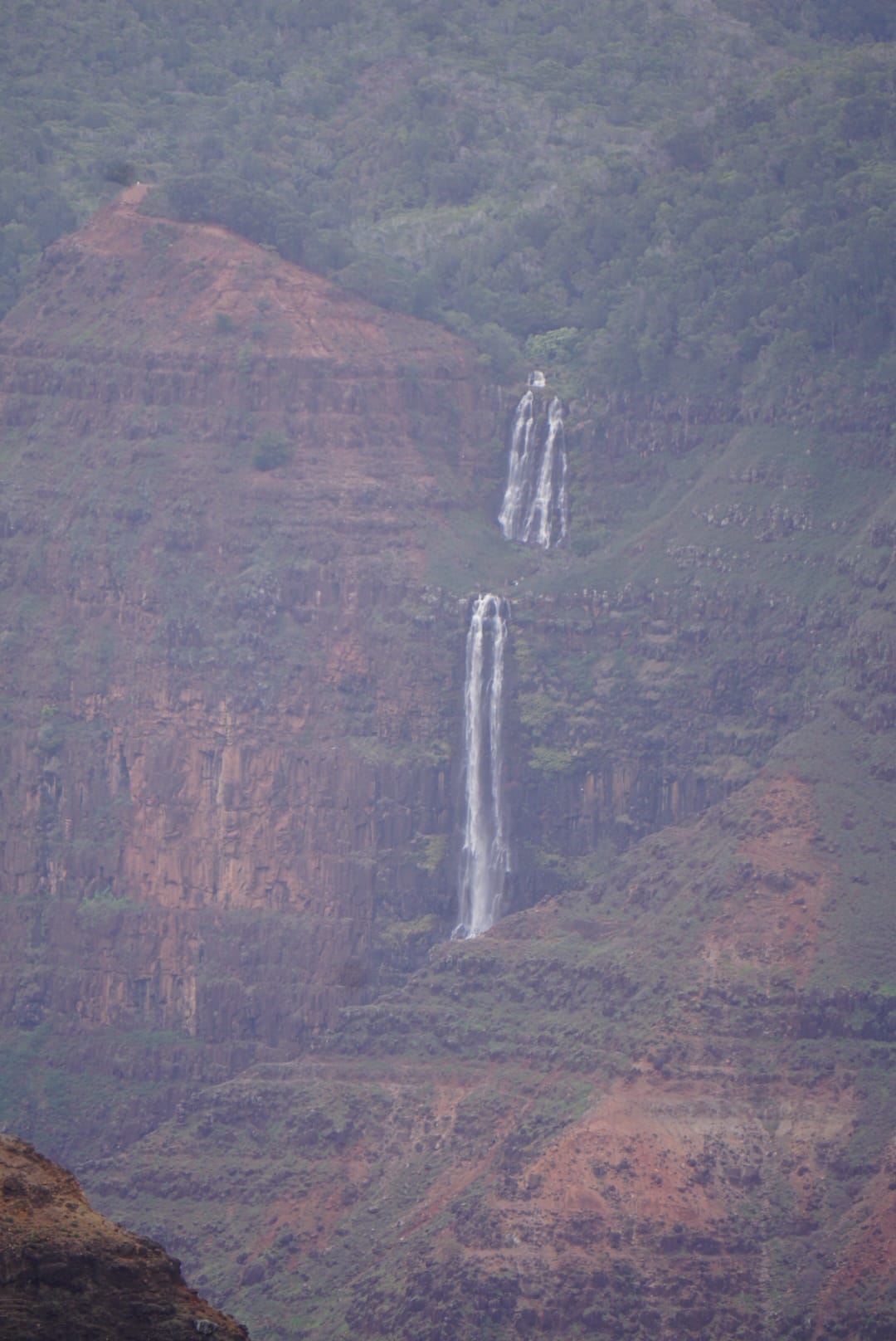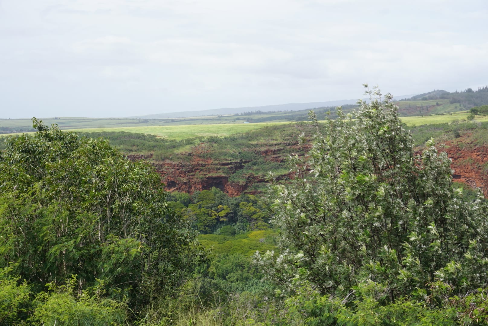 Canyon Trail de 4 millas i/v (6.5 kms). Llega hasta la parte superior de las cascadas Waipo’o falls, pero éstas no se ven porque quedan ocultas bajo la montaña.